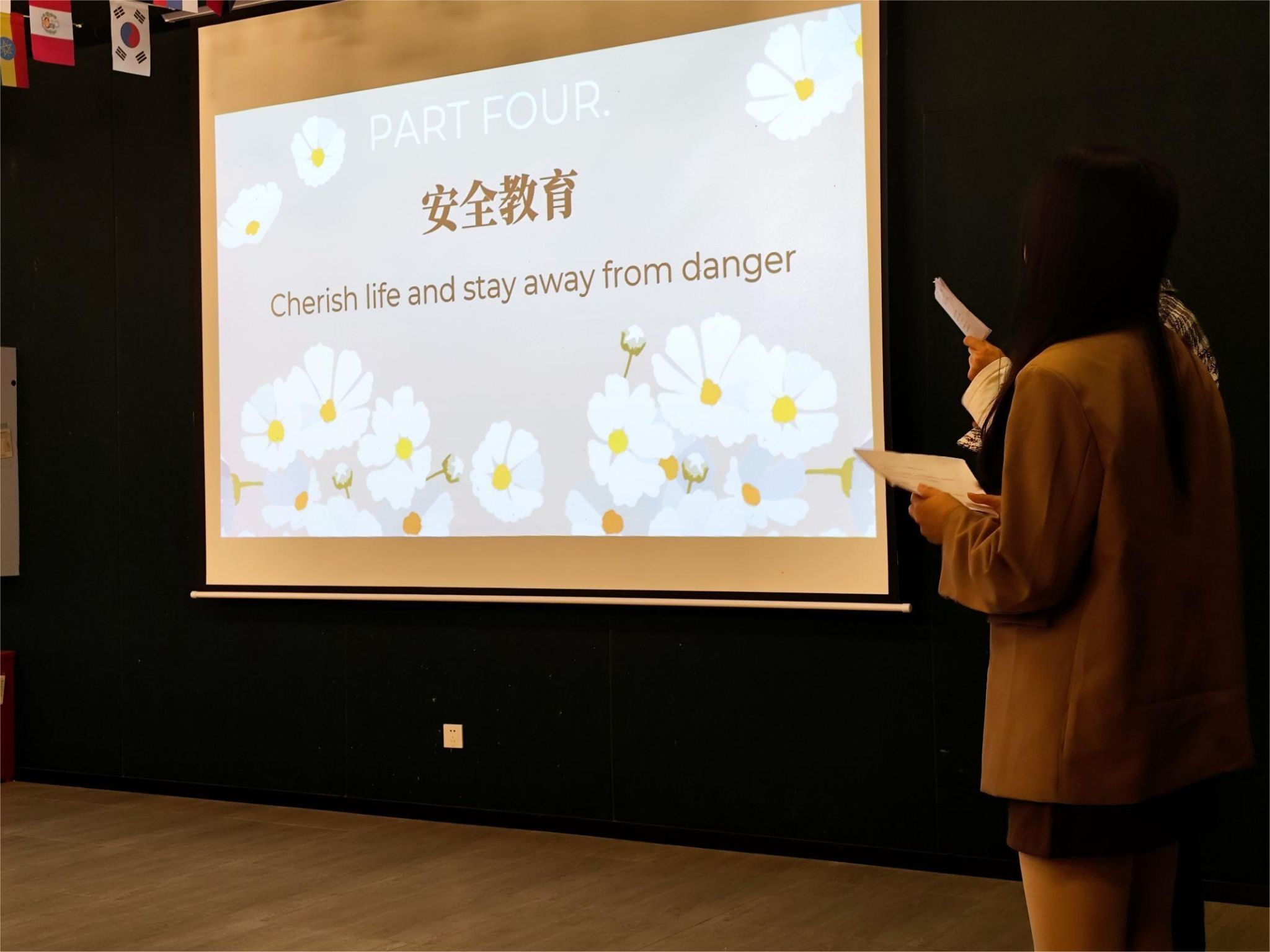 在轻松愉快的游戏过后,主持人又严肃的为同学们讲起了有关安全教育、行为习惯和学风建设的问题。对于安全教育,主持人强调“安全无小事”。近年来,全国各地学校安全事故频发,所以在学校开展安全教育是一项至关重要的任务,旨在提高同学们的自我保护能力、培养安全责任心,并为其健康成长创造安全、和谐的学习环境。
