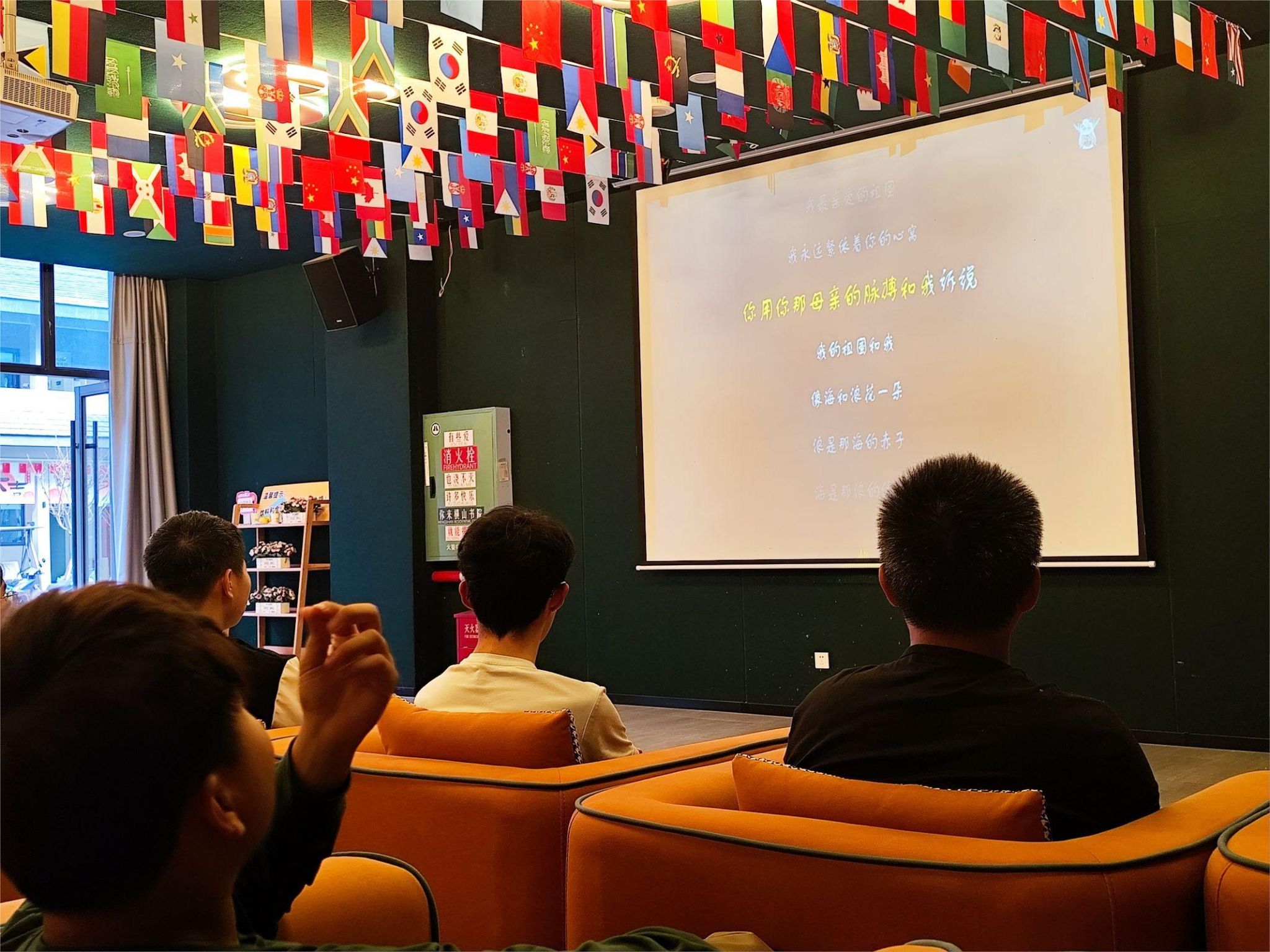 主持人带领大家齐唱《我和我的祖国》,这是一首富有国家情怀的歌曲,通过共同演唱,不仅有助于传承和弘扬爱国主义精神,还可以促进学风建设、加强学生凝聚力和团队协作能力的培养,这些品质将在日后的学业和工作中发挥积极作用。