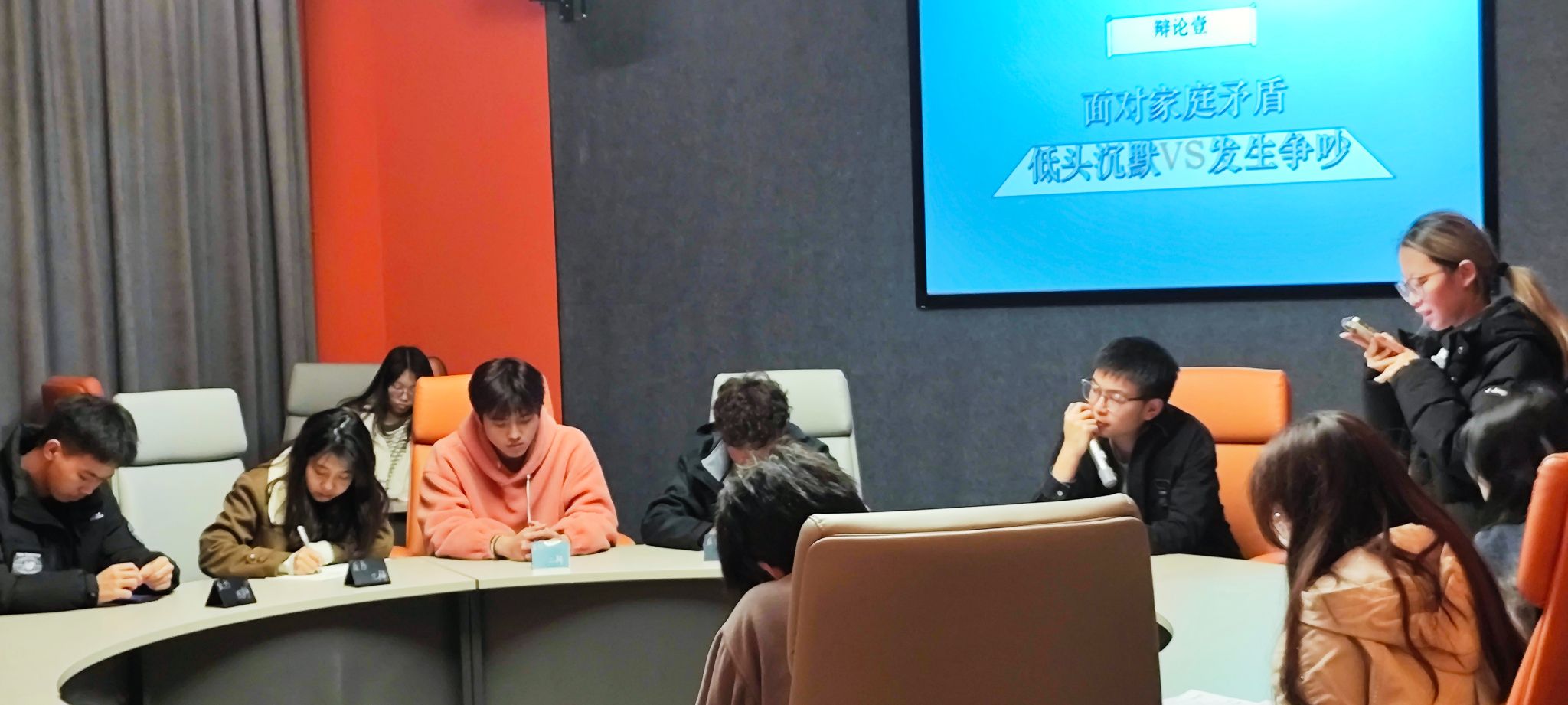 家,一个很平淡的地方,一笔一画勾勒着舒适与自然。在成长过程中,我们或多或少与家庭之间产生矛盾。为孩子们让孩子们真正聆听父母的心声,勇敢表达自己的诉求,解决家庭矛盾,20230312团支部于2023年11月15日古剑龙泉会议室举办了“解决矛盾,笑看人生”主题辩论活动。