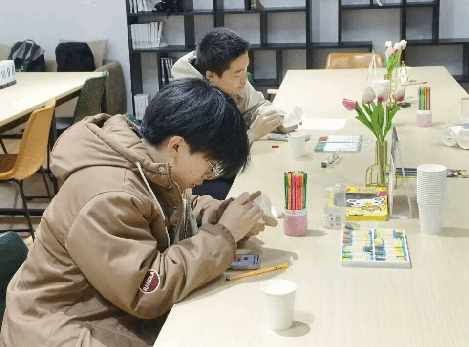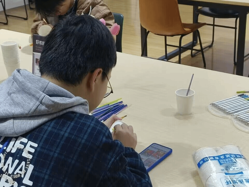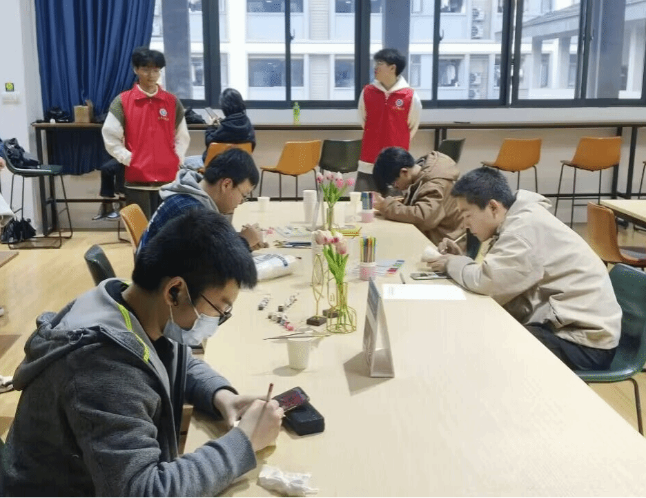 红色是我们国家、我们民族,我们党最鲜亮的底色。志愿者邀请同学们画出心中有关红色主题的图案。在创作过程中,同学们充分发挥想象力与创造力,在纸杯上表达内心对红色精神的敬仰。创作结束之时,也代表着本次活动迎来了尾声,志愿者有序地组织好同学们提交了他们的作品并完成了签到。