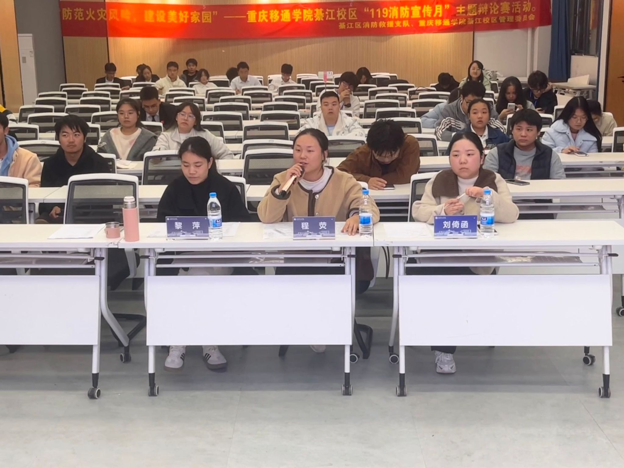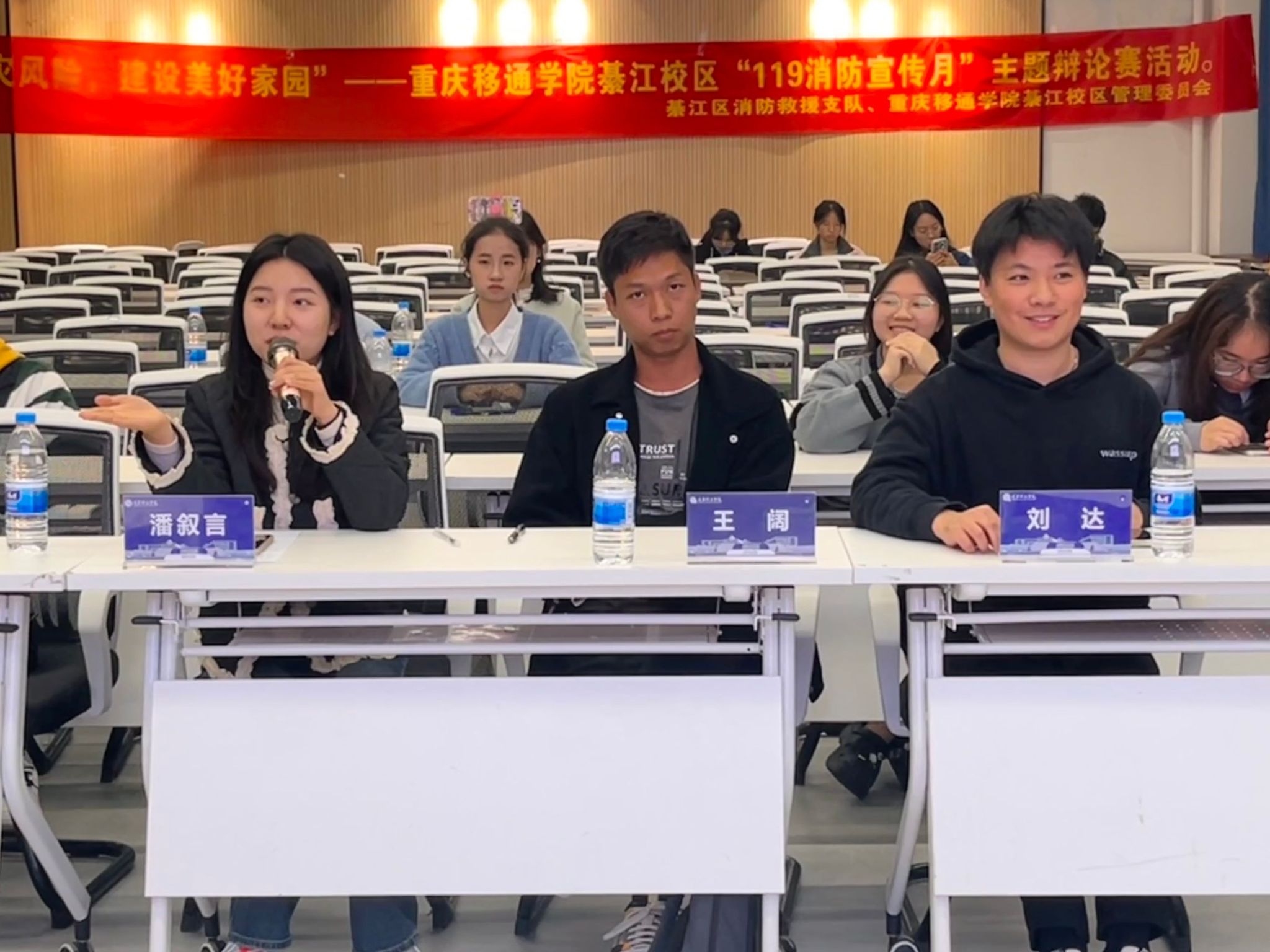 2023年11月,重庆移通学院綦江校区迎来了激动人心的“防范火灾风险,建设美好家园”--“119消防宣传月”主题辩论赛活动,此次活动由綦江区消防救援支队、重庆移通学院綦江校区管委会主办,校区安稳办、校团委、信息安全学院学生会学习部承办,并于12日19:00在行者楼106举行初赛,19日17:00在綦河书院二号楼观涛·多功能报告厅举行复赛。