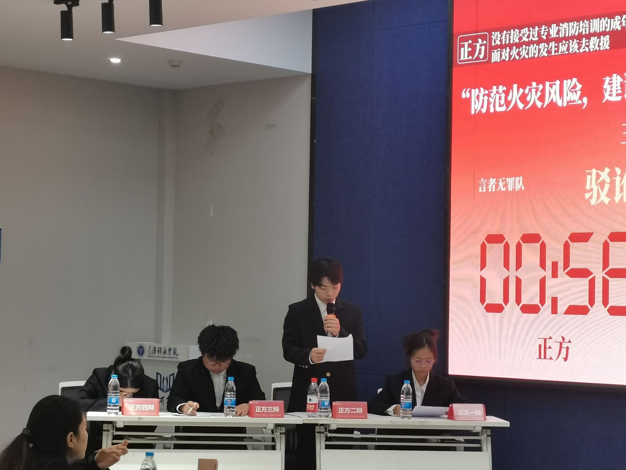 本次比赛旨在提高学生对消防安全的认知与意识,同时增强参赛队伍的应变能力与表达能力,这不仅要求选手们对消防知识有深入理解,还对其逻辑思维和团队合作能力提出了较高要求,比赛吸引了众多热爱辩论的学子参与其中。