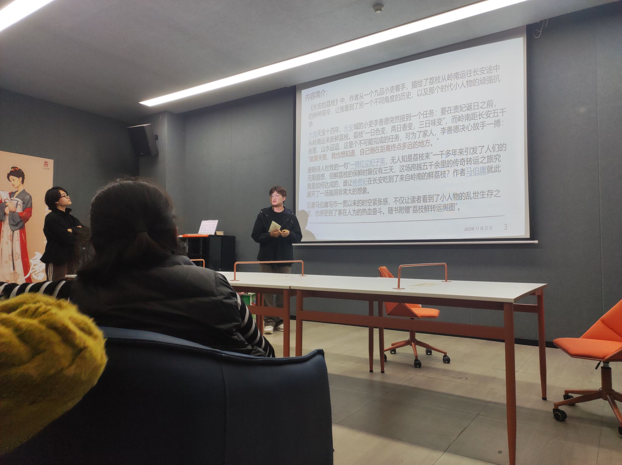 首先由饶志鑫同学给大家带来了《长安的荔枝》一书。这本书是同学们平时较少接触的历史类书籍,作者马伯庸是一位家喻户晓的历史文创作者,在这本书中,围绕九品小吏李善德被任命为荔枝使,为生活拼搏的故事。饶志鑫同学通过这样一位小人物却仍然有着热爱生活的故事,告诉同学们,不要丧失了对生活的热情。分享过程中,饶志鑫同学对荔枝的存储方式进行提问,大家积极举手回答进行互动。