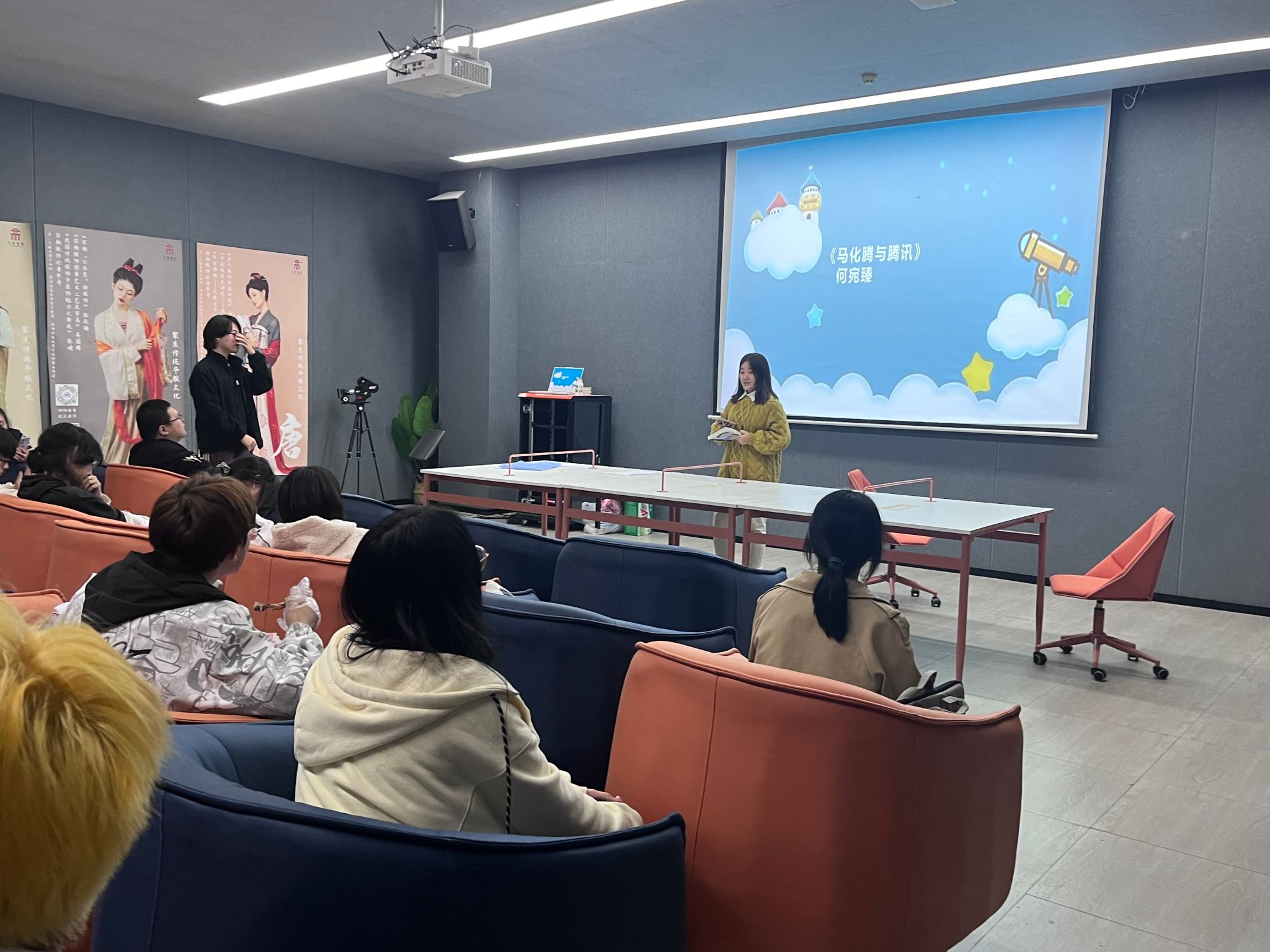 然后何宛臻同学,洪翠芹同学都分享了关于腾讯公司的书籍。何同学分享的是腾讯公司的创立与发展,而洪同学分享的则是腾讯背后的男人——马化腾。在《腾讯传》中,对于马化腾先生创业历史和企业运营等都有深刻的描写,特别是对于腾讯各位领导人的采访,给我们提供了更真实的资料,去更好的感受腾讯这家企业,并从中学习和成长。
