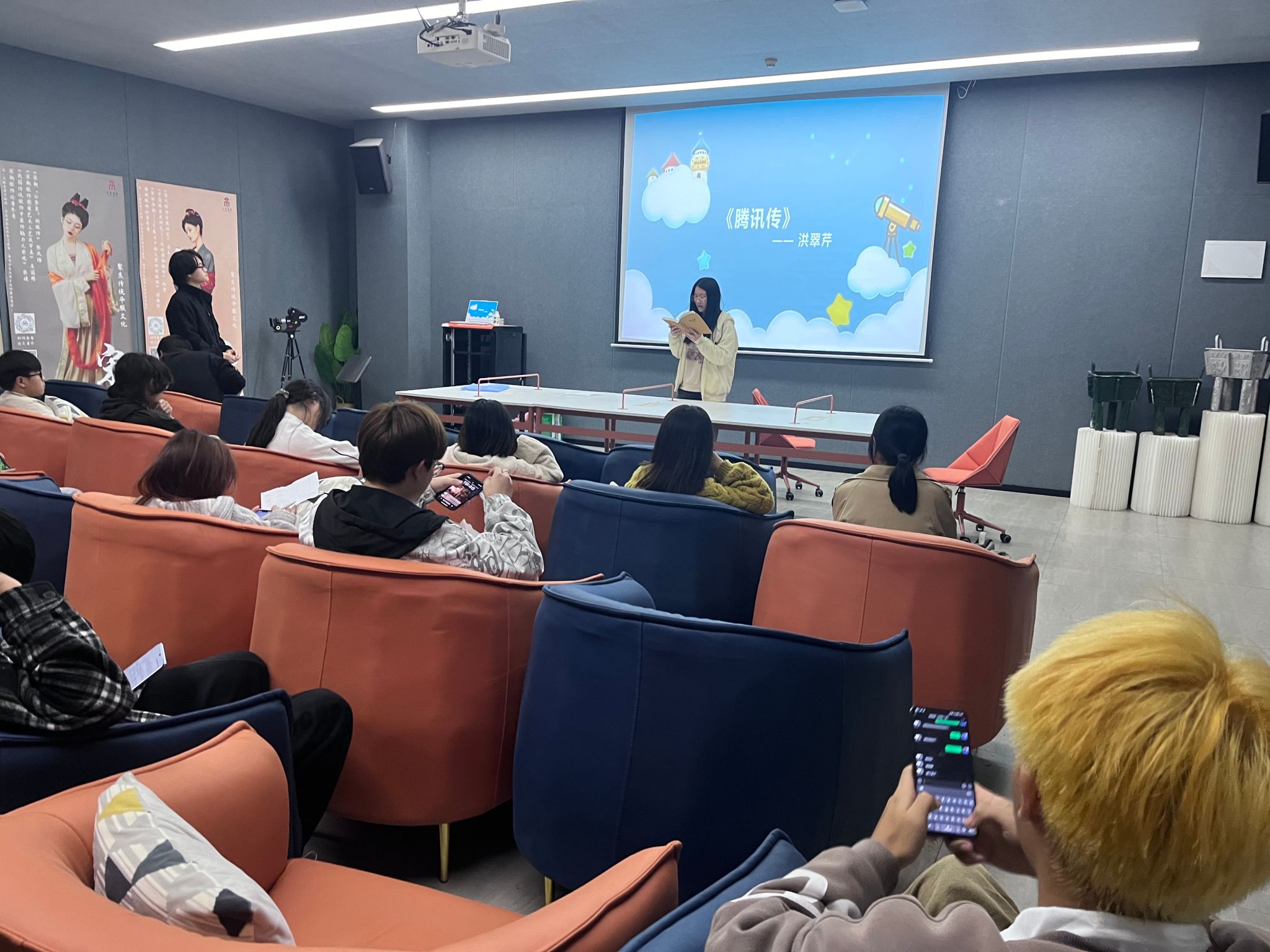 遨游在浩瀚的书海,书中的世界尽收眼底;营造书香氛围让同学们爱读书,读好书。积极响应校园“书香校园”阅读计划,鼓励同学们多读书,信息安全学院异科导师闫春娟老师于11月22日晚在玉棠书院视界影音室召集2022级软件工程2班、软件工程3班的同学齐聚一堂举行了大咖阅读分享会。本次分享活动由陈豪同学、蒋林锋、范玲洁和邹平平积极组织,其中蒋林锋同学主持本次分享会,软件工程2班的饶志鑫、龚恩佳、何宛臻、洪翠芹与软件工程3班的宋益发五位同学进行了精彩的分享。