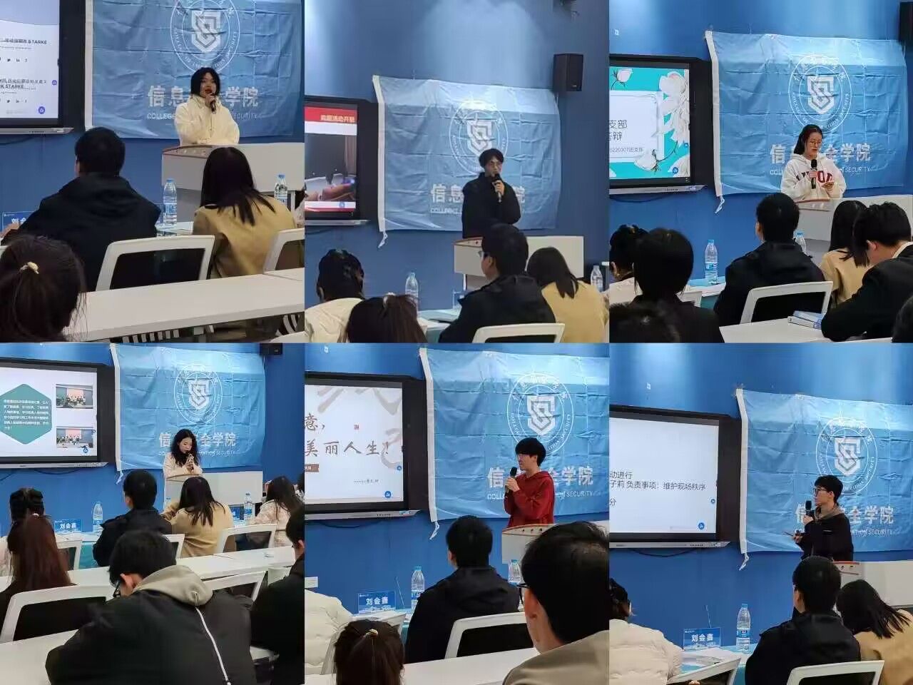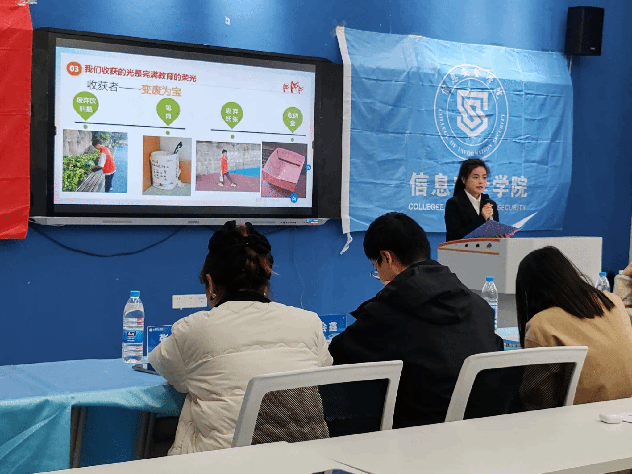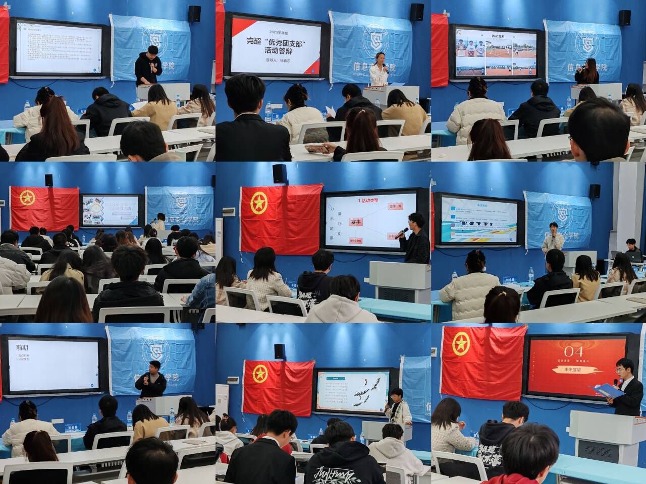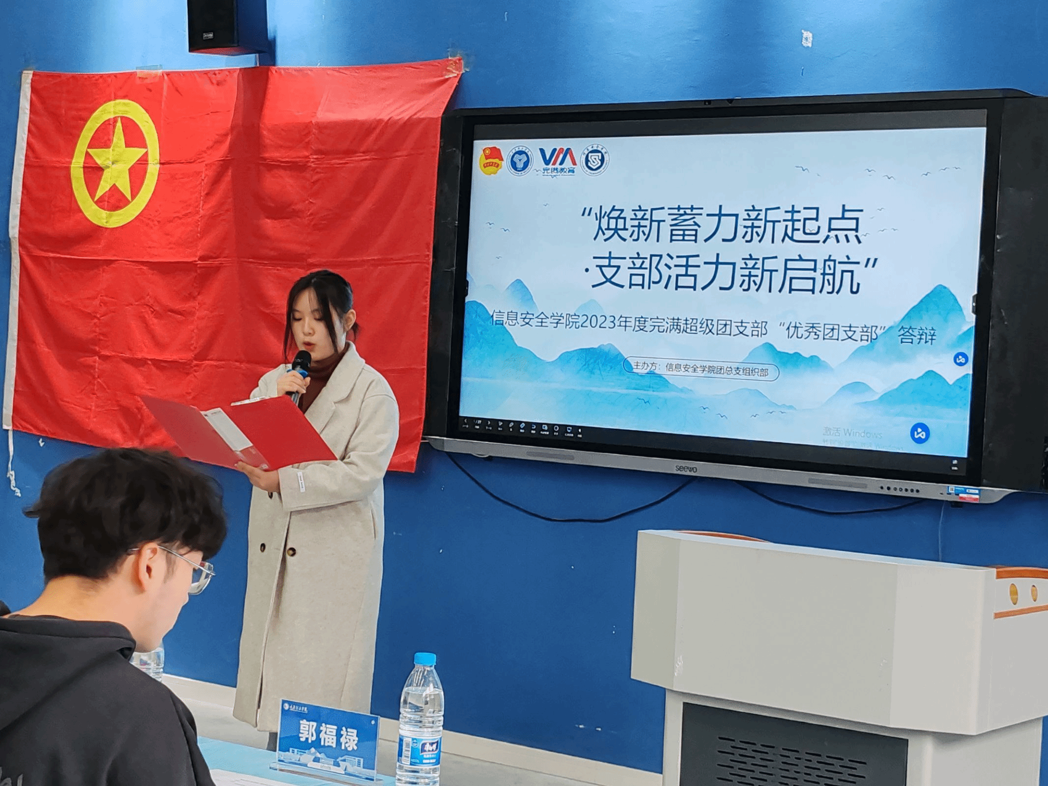 为提升团支部的自身建设,充分挖掘团支部在完满教育工作活动中的亮点和风采,信息安全学院团总支组织部于11月24日14:00在綦河书院二号楼智慧教室开展了2023年度完满超级团支部“优秀团支部”答辩。现场邀请到信息安全学院团总支书记肖琳老师,以及学院各部门指导老师谭倩、刘会鑫、张颖、车秦艳、郭福禄老师参与本次活动。