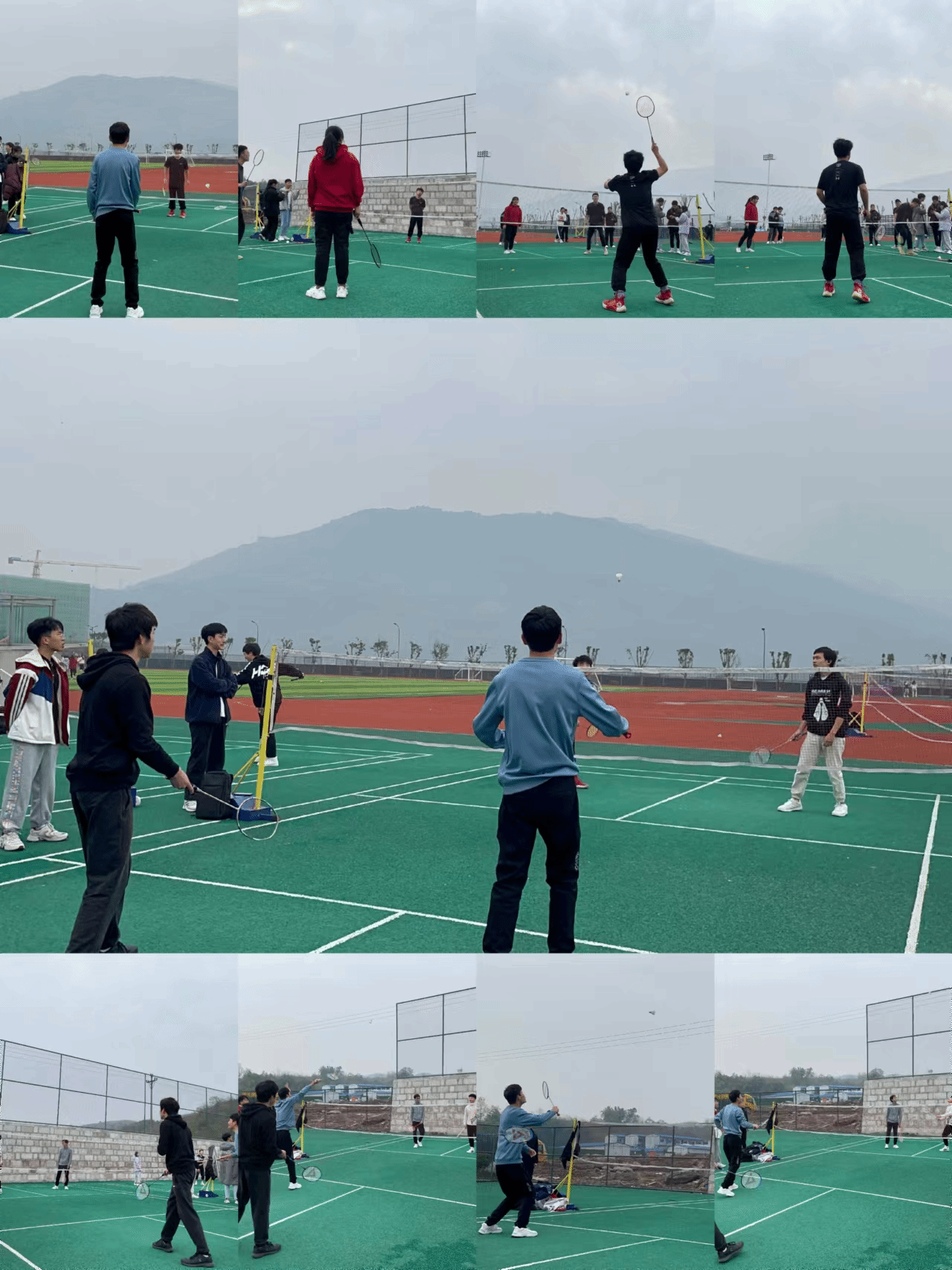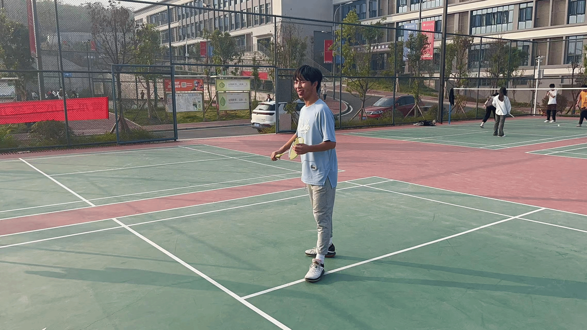 第一项活动——羽毛球。田径场上,同学们竭尽全力,用青春挥洒成汗水,上演了一场激烈的羽毛球对决。球网隔绝的对立面,展现着参赛选手们精湛的球技和高超的身体素质,球拍在空中划出美妙的弧线,球场上响起连连掌声和欢呼声,四处弥漫着紧张而激烈的气氛。凡目光所至,皆为青春笑脸;视线所及,都是欢乐海洋。