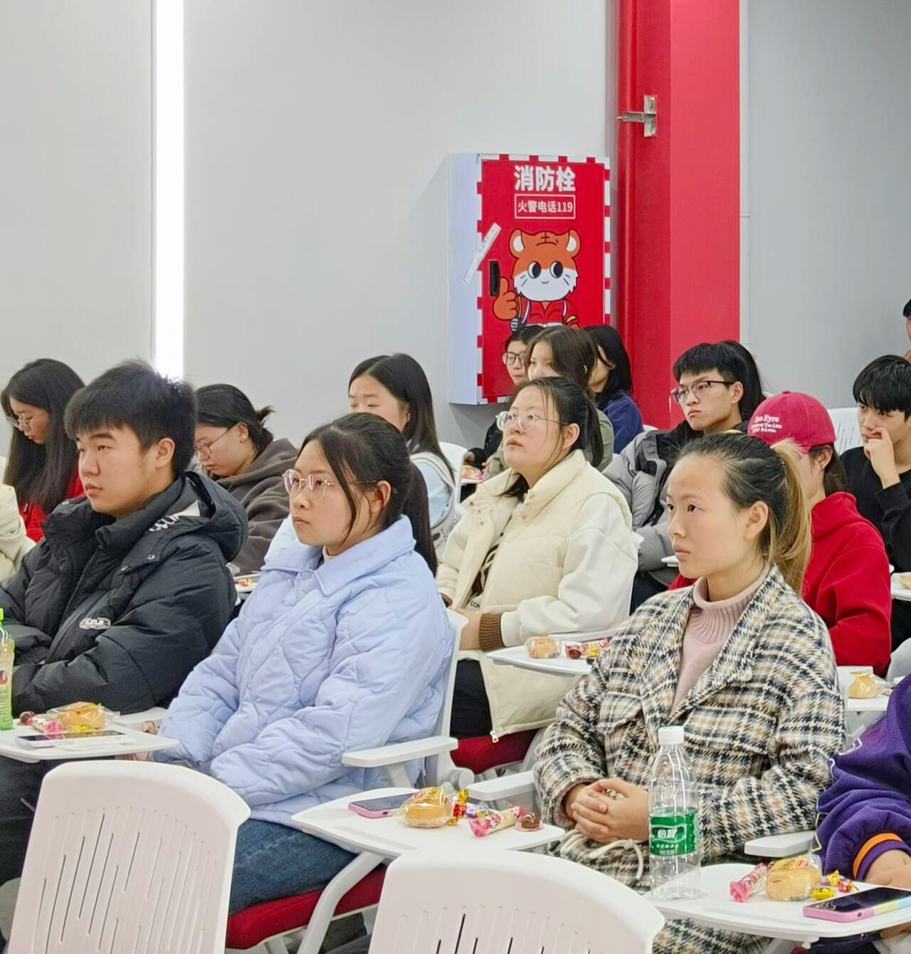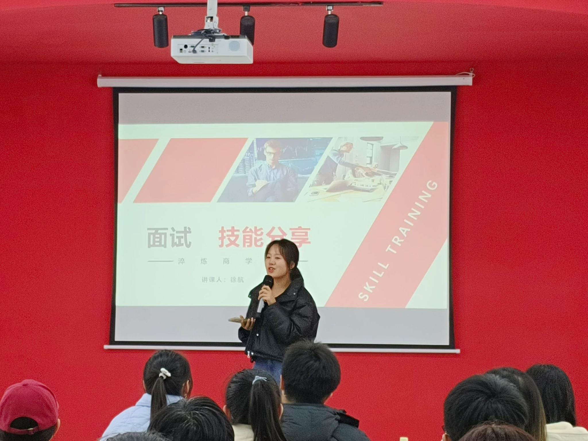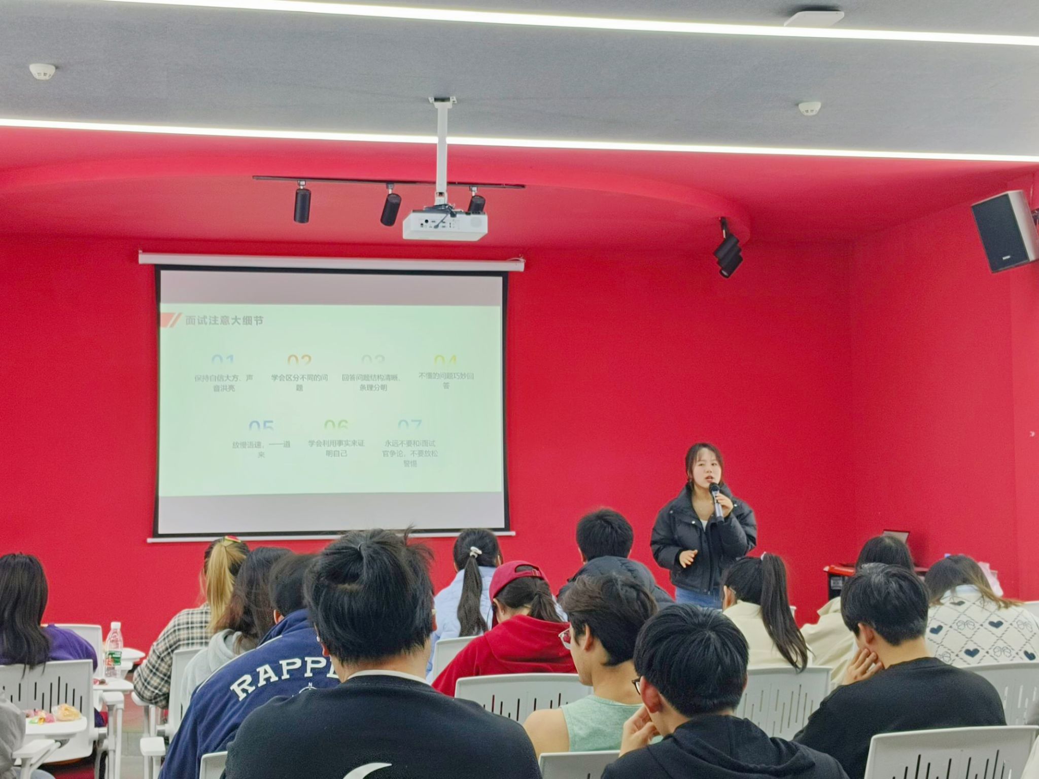 在最后的问答环节,同学们积极地询问有关面试技巧的问题,徐老师也根据自己的个人实践经历和专业知识,解答了同学们的相关疑惑,提供了宝贵的面试经验和技巧。结束后,同学们积极交流所学到的知识,发表自己的感想,并且针对自己的问题与老师进行探讨。