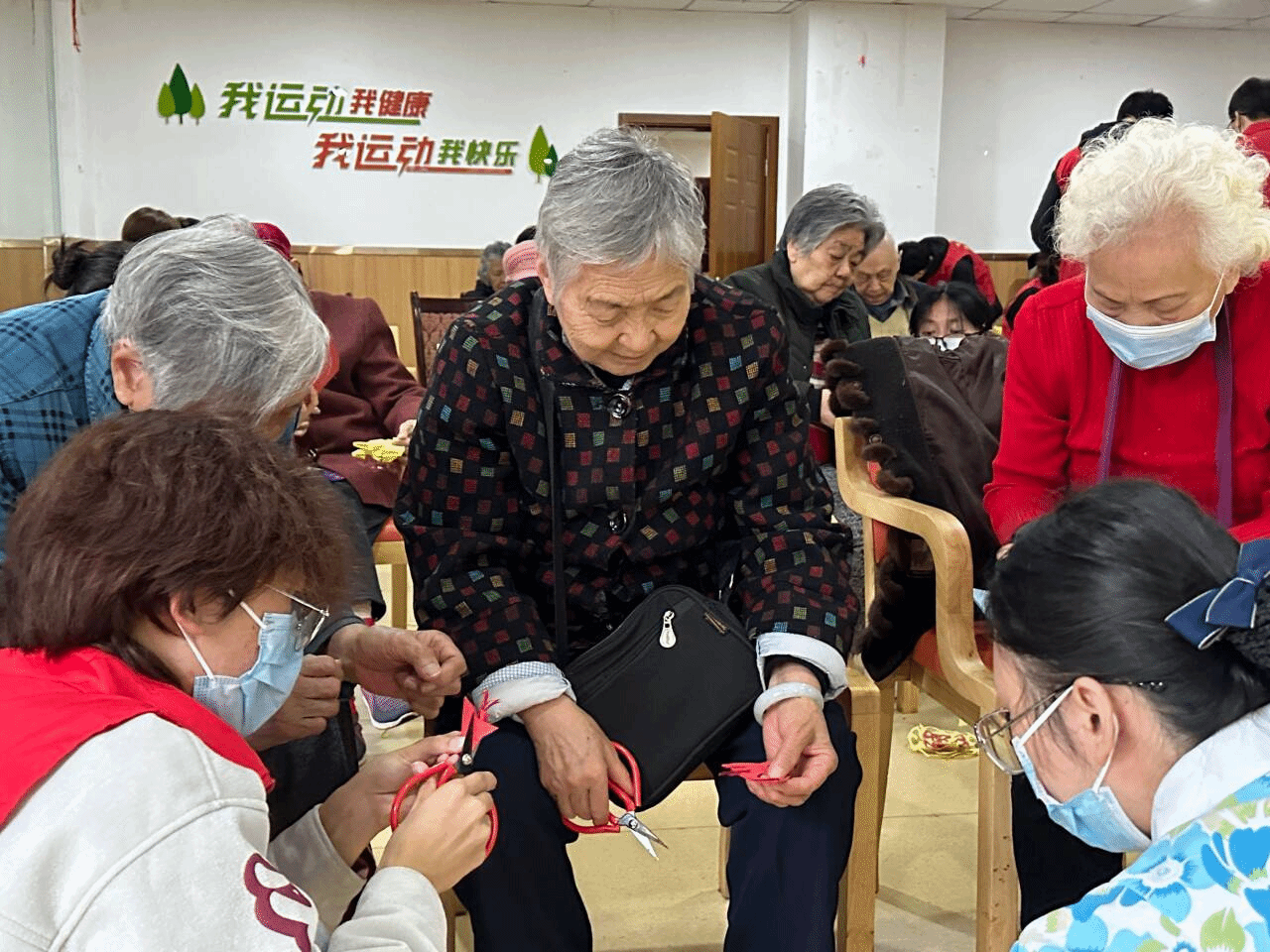 伴随着舞蹈的结束,活动迎来了下一个环节,志愿者为老人们有序分发彩纸后,耐心地教老人们用彩纸折成各种生动有趣的小动物,又在彩纸上用剪刀剪出漂亮的形状,千纸鹤、喇叭花,一张张极具美感的窗花出现在老人们手中。在欢声笑语中,老人们相互展示着彼此的手工作品。