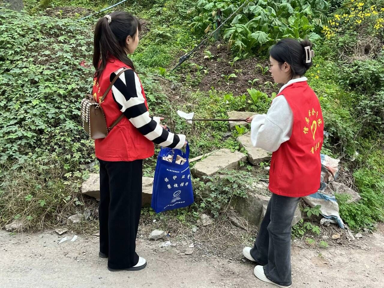 在社区负责人的带领下,志愿者“兵分三路”开始了本次的志愿服务活动。志愿者将易拉罐、玻璃瓷片、金属碎纸,进行仔细检查并分类打包处理;拿着扫帚和垃圾桶去往街道拐角,大鹏坡田,进行垃圾清扫;移开马路街道上的断枝落叶;拾走田间小路里的白色垃圾。