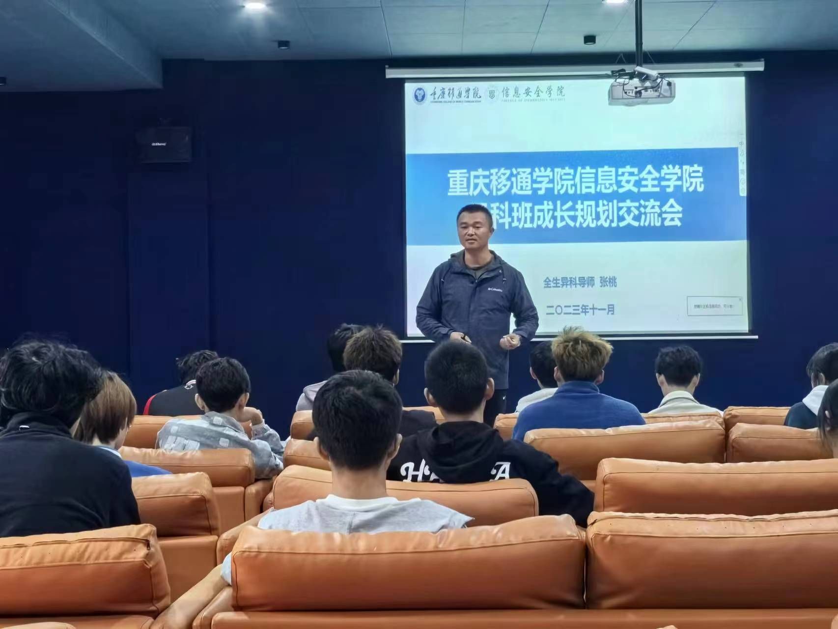 为帮助同学们能更好的在异科班中学习、成长,促进同学们相互交流、加深认识,同时能够进一步完善成长规划,异科导师张桃特于2023年11月24日下午2点50在綦河书院2号楼银河影音室开展了异科班成长规划交流会,本次交流会共35名同学参与其中。