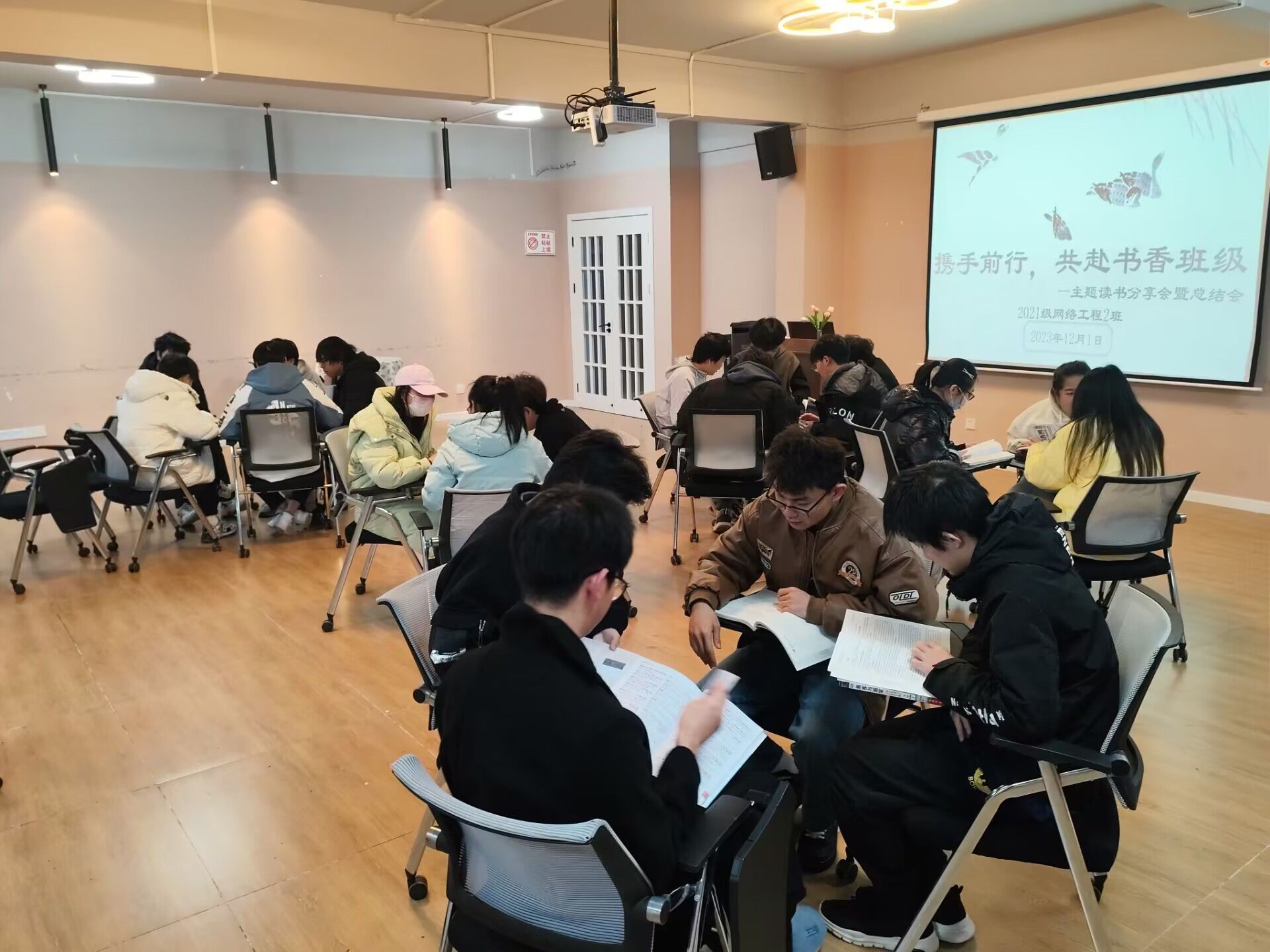 读万卷书,行万里路。为了增强同学们的读书兴趣,提高同学们的自身能力,文化素养,实现成长目标,奏完满华章。信息安全学院2021级网络工程2班于2023年12月1日在小石潭·多功能活动室开展书香阅读分享会暨总结会,引导同学们向热爱读书、丰富个人精神文化世界的道路发展。本次分享会与总结会由班级文体委员崔扬君为大家主持。