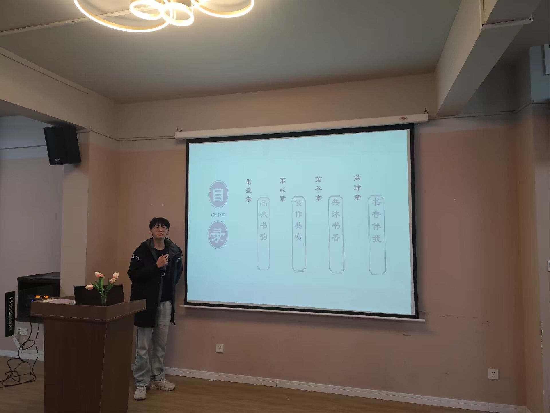 最后,班长胡卓对此次书香阅读系列活动进行总结,他分享了自己本次阅读的心得和收获,他总结道:“建设一个书香班级不仅仅是在阅读中努力,真正的‘书香’而是体现在班级各个方面,书香的班级文化、书香的宿舍文化、书香的课堂氛围……”在未来的学习和生活中,我们在继续坚持阅读的同时,携手同行,共赴书香,为班级各方面书香文化添砖加瓦,用知识和智慧点亮未来的道路。