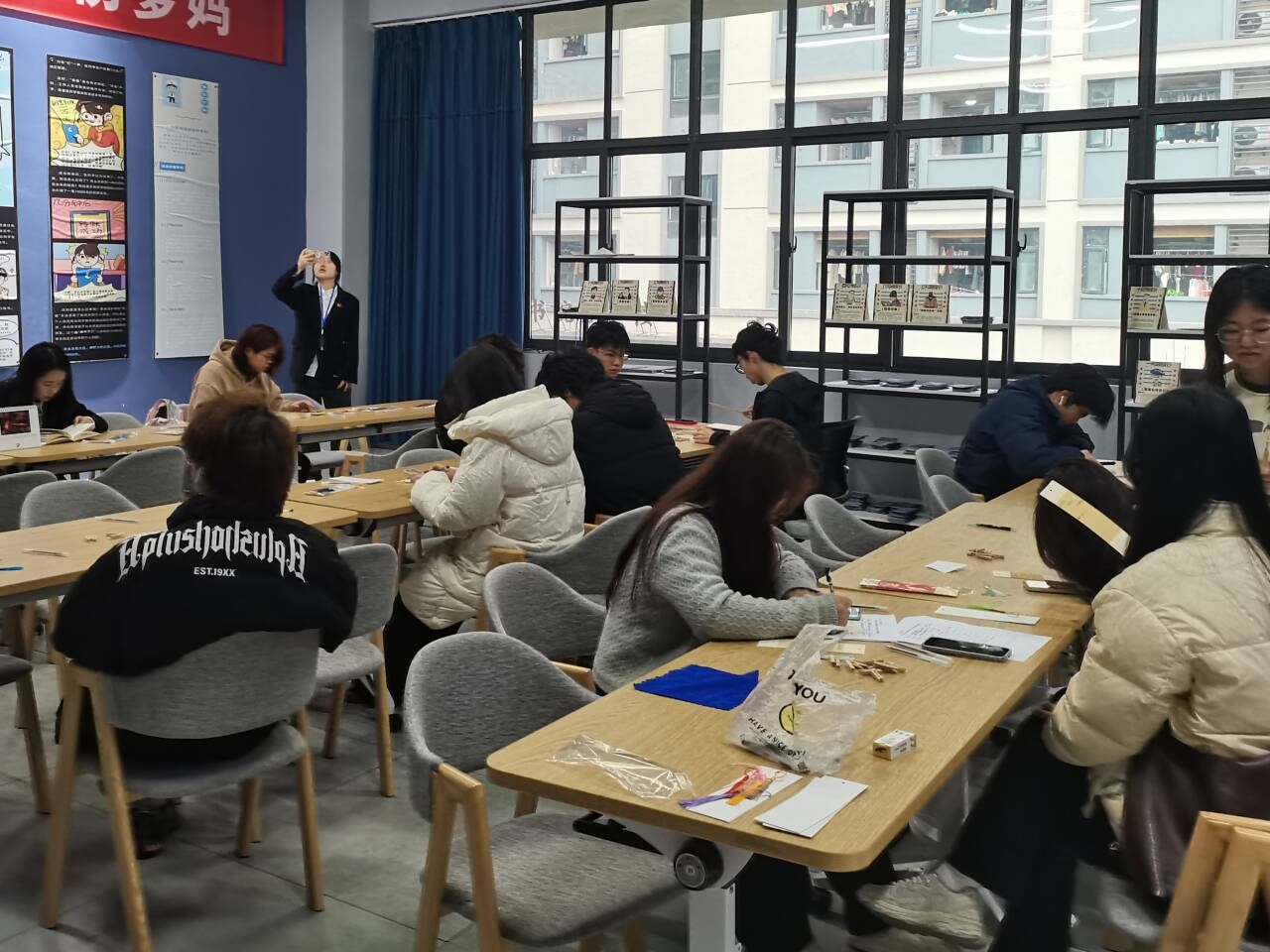 同学们充分发挥自己的创意,设计出各式各样的书签。有的书签以简约大方为主,体现了书籍的内涵;有的书签则色彩斑斓,充满活力。活动现场气氛热烈,同学们互相交流、学习,共同完成了这场书签制作活动。他们紧握着精雕细琢的书签,双眸中闪耀着灵光,流露出对于书籍的热诚之情。