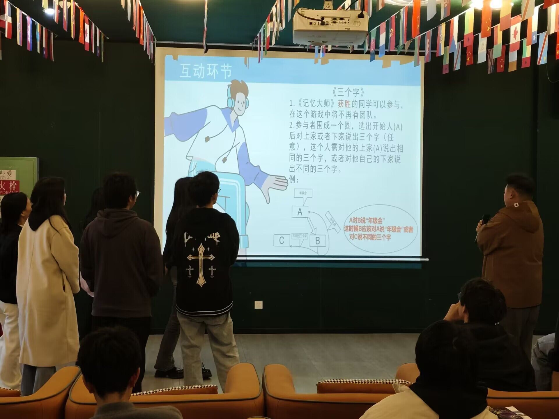 在互动环节中,同学们踊跃参与其中,林俊杰同学悉心地为同学们讲解游戏规则。在《心灵感应》游戏中,由一名队员通过做某个动作或表达某种情绪,心灵感应师则需要通过观察队员的表演,猜测他们正在做什么或表达什么情绪,在本场游戏中,惹得全场爆笑连连,最后有三名同学获胜,赢得了精美礼品。