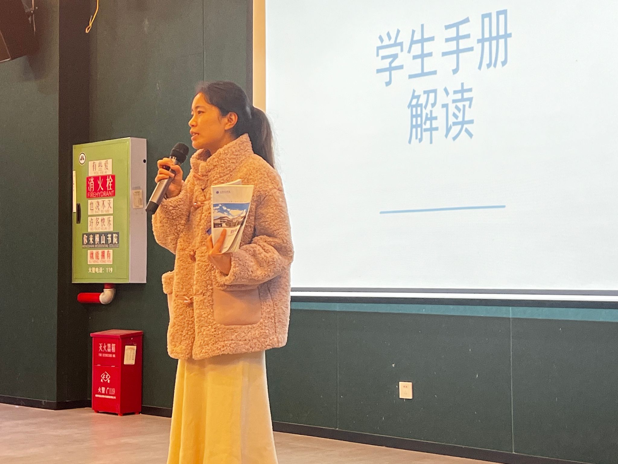 为了帮助同学们更好地理解学生手册中学校的规章制度、学习生活的指导、学生权益保障等方面的内容。辅导员黎萍老师为同学们悉心地介绍了学校的纪律要求、行为规范、考勤制度等内容,还为同学们解读了学生手册中申报奖学金的方式,参加志愿服务的途径以及重庆移通学院学士学位授予工作实施细则等。在讲解过程中,黎老师耐心回答了同学们对学生手册中疑惑的问题,使同学们更加清晰地理解学生手册中的信息,有助于他们规划学习和生活,培养自我管理能力。