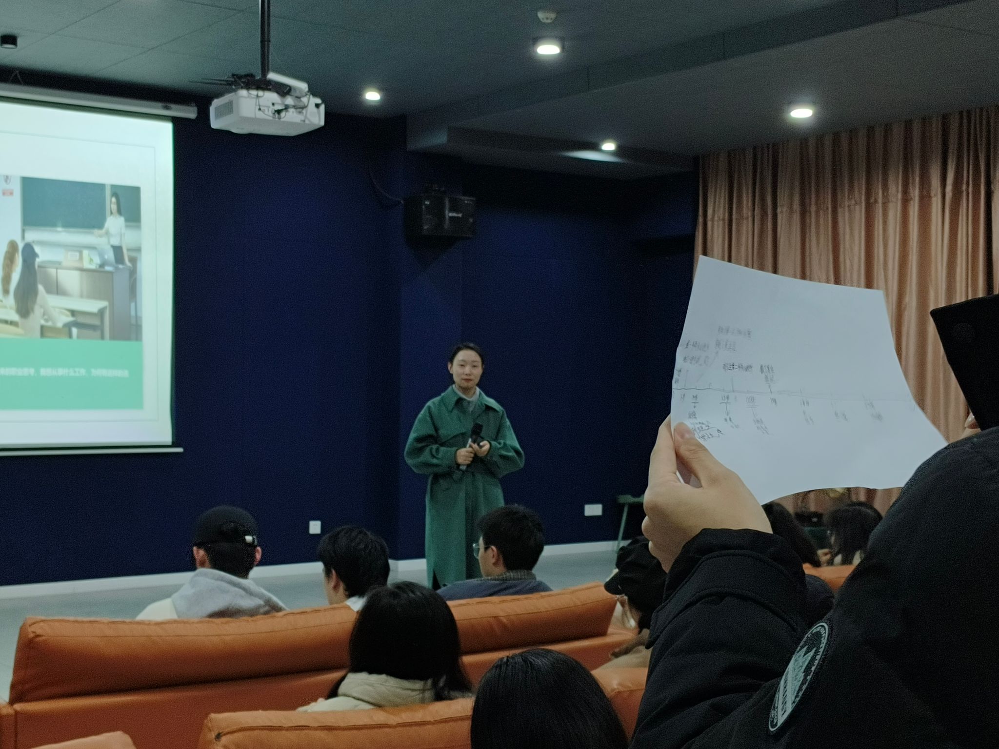 活动伊始,林老师通过问题引导学生深入思考职业与理想之间的差异,并通过案例剖析了在不同人生阶段理想与职业之间的演变。她结合专业领域和亲身经历,与学生们展开了深刻而富有启发性的对话。