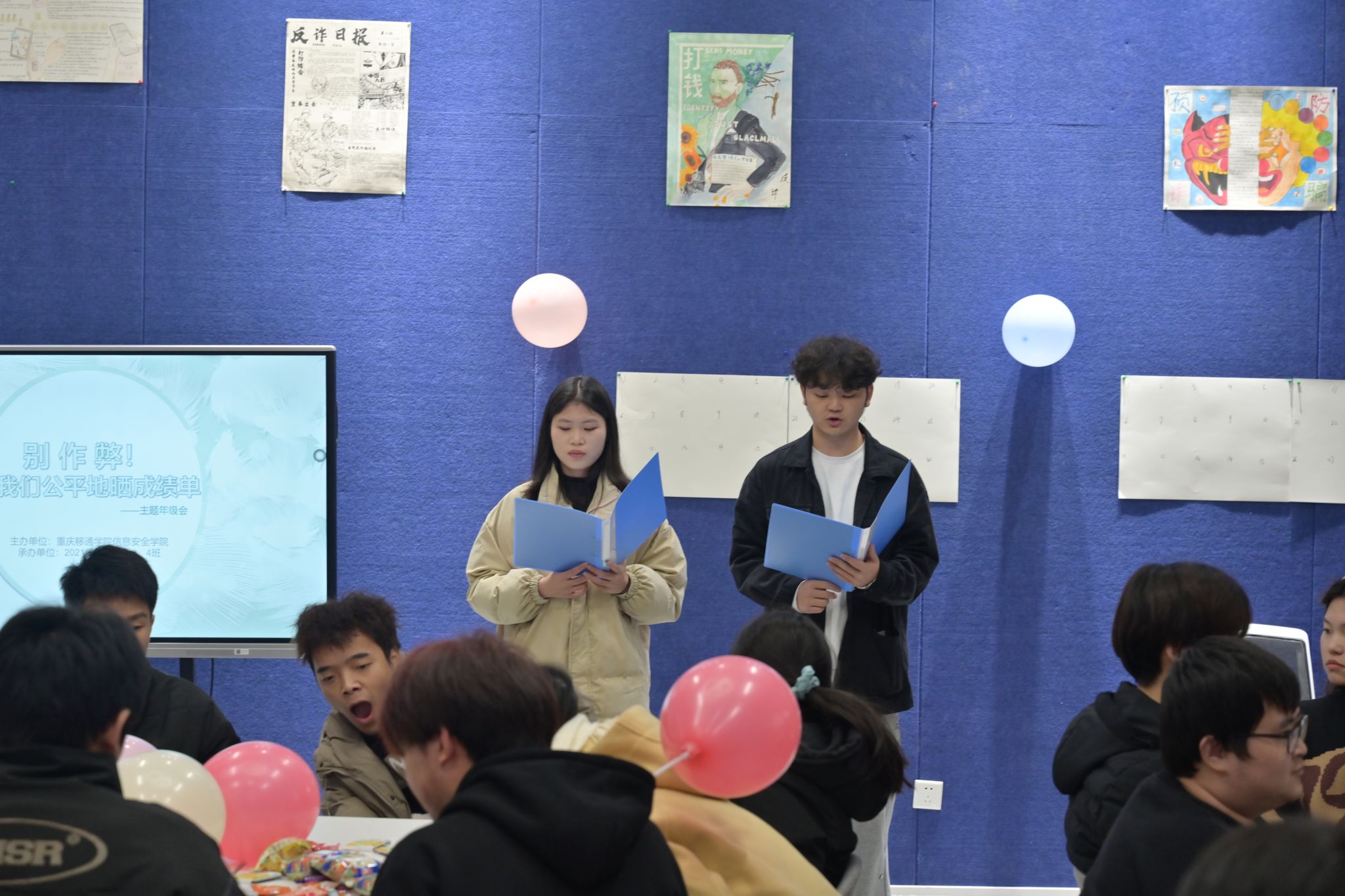 本学期的学习任务接近尾声,期末考试即将到来。如何实现诚信考试是一个大家万众瞩目的话题。作为期末考试,不仅仅是检验知识的掌握程度,更是一场道德品质的考试。为此信息安全学院2021级软件工程1-6班于12月15日綦河书院2号楼南渊功能室开展以“别作弊!让我们公平地晒成绩单”为主题的年级会,引导学生树立正确的考试观念。