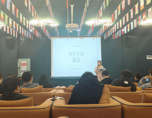 为了帮助同学们更好地理解《学生手册》中普通高等学校学生管理规定、学生行为准则、学籍管理规定等内容,重庆移通学院信息安全学院2023级软件工程13-18班辅导员黎萍老师于2023年12月18日下午18:00在横山书院流光多功能影音室组织并开展一场“知纪律 守学规”——《学生手册》内容解读会。参与此次解读会的同学主要是2023级软件工程13-18班6个班级的学生代表,共计40余名。