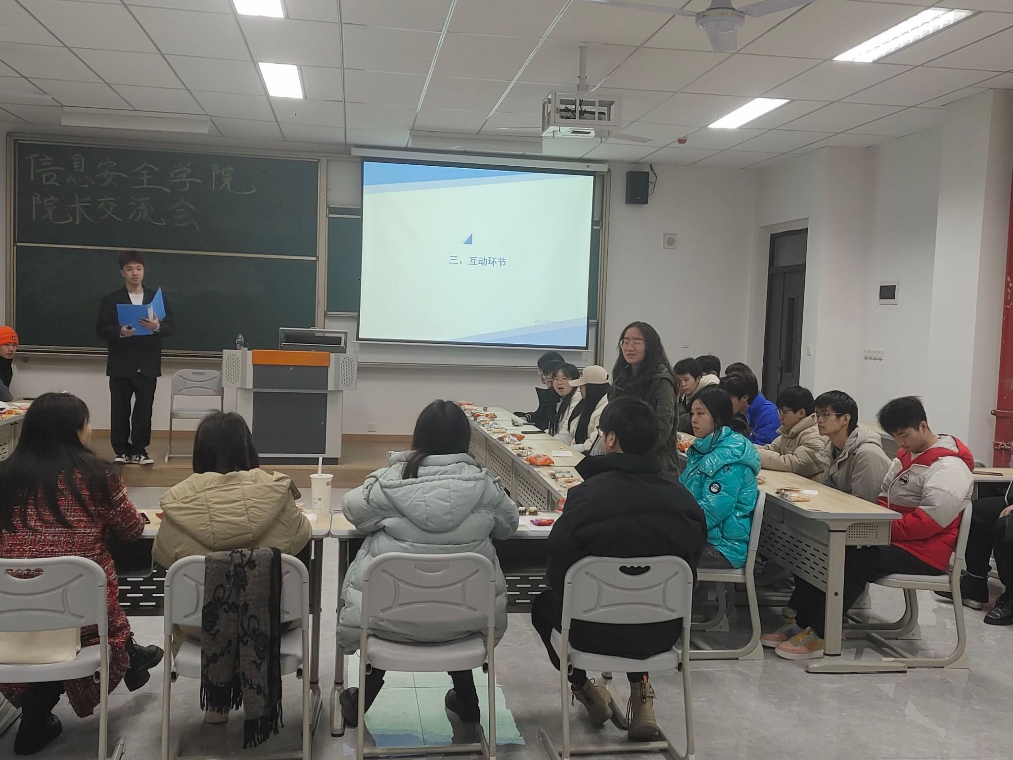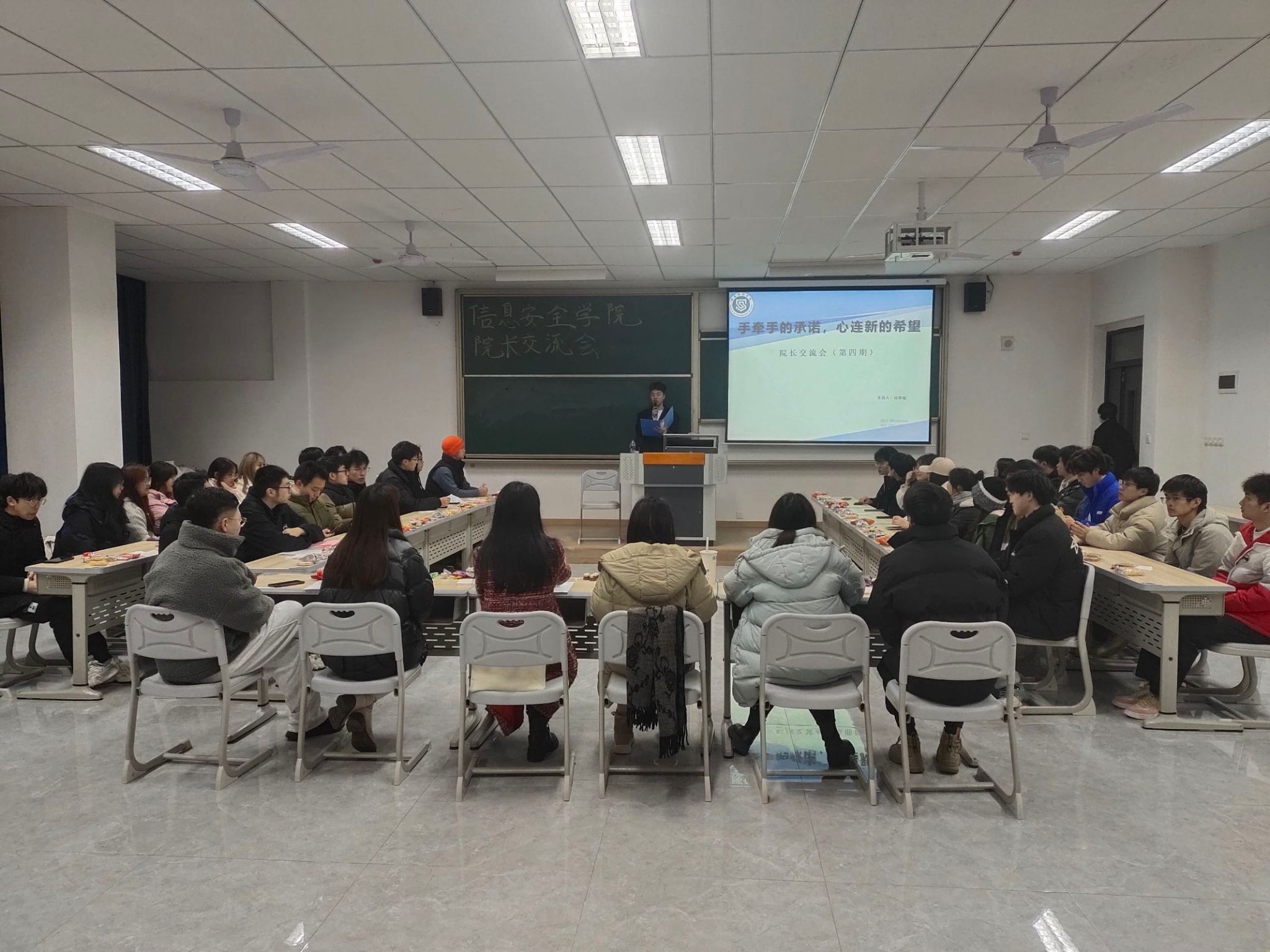 物联网工程专业涉及计算机、通信、电子等多个学科,学习难度较大,许多同学在学习过程中感到迷茫和困惑。另外,当前的就业形势严峻,未来选择就业创业还是考研深造等问题也让同学们备受关注。为了帮助同学们更好地学习了解本专业,信息安全学院权益生活部于2023年12月21日星期四中午12:30在贤者楼312特别举办了“手牵手的承诺,心连新的希望”院长交流会第四期。
