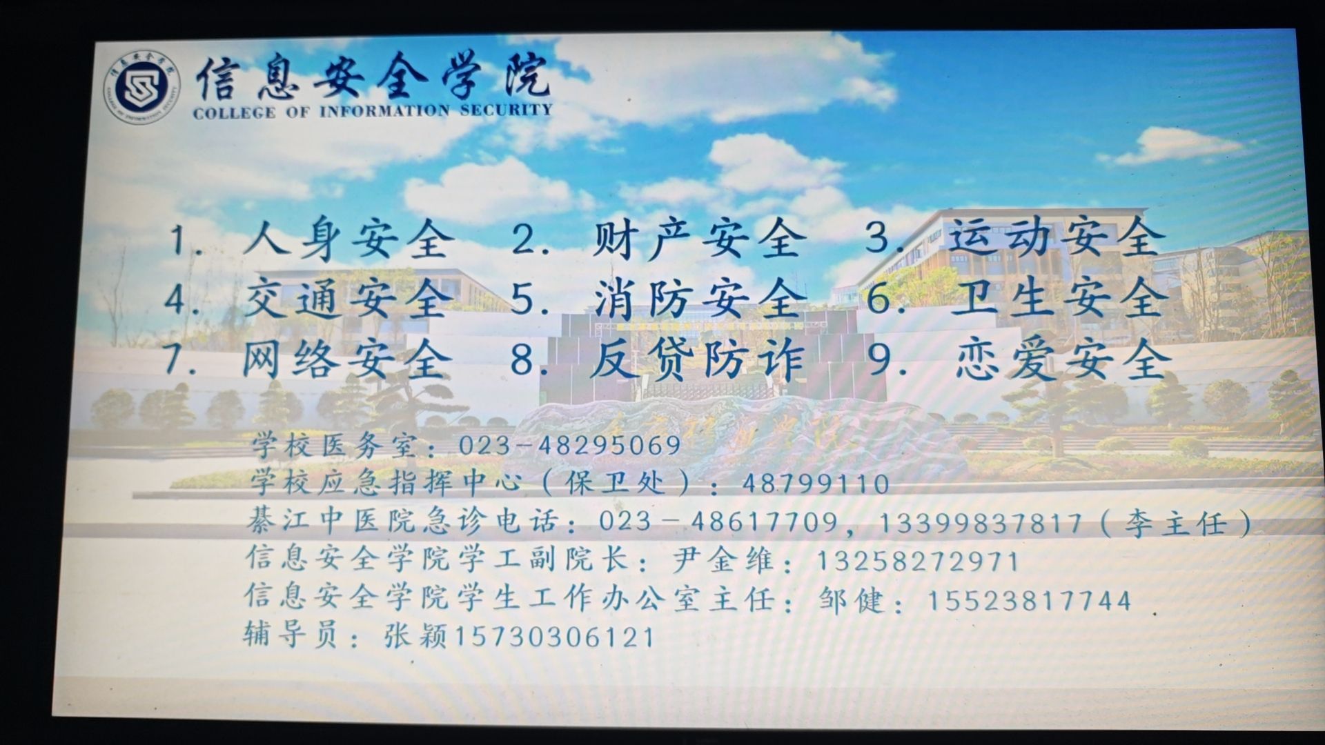 会议过程中,辅导员一步步为同学们讲解了各方面的安全问题,分别举例分析各项安全的重要性,让同学们意识到安全的意义,培养主动躲避危险的意识。
