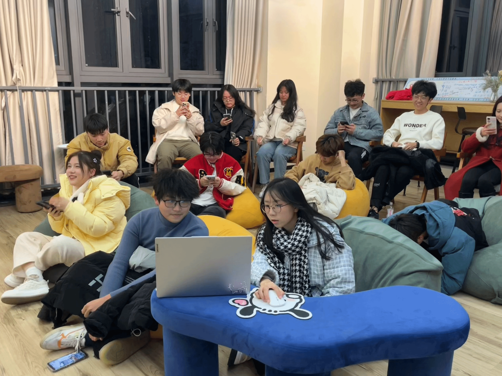 学生稿件内容分享环节的最后,随着音乐的响起,活动现场气氛活跃,学生们纷纷在弹幕中互动,就寝室文化的建立和与学生的相处方式进行了深入的交流和讨论。一位学生在稿件中提到,寝室是大家栖身的地方,有了一个和谐而有趣的寝室文化,可以提升室友之间的感情,也能够在学习之余放松身心。