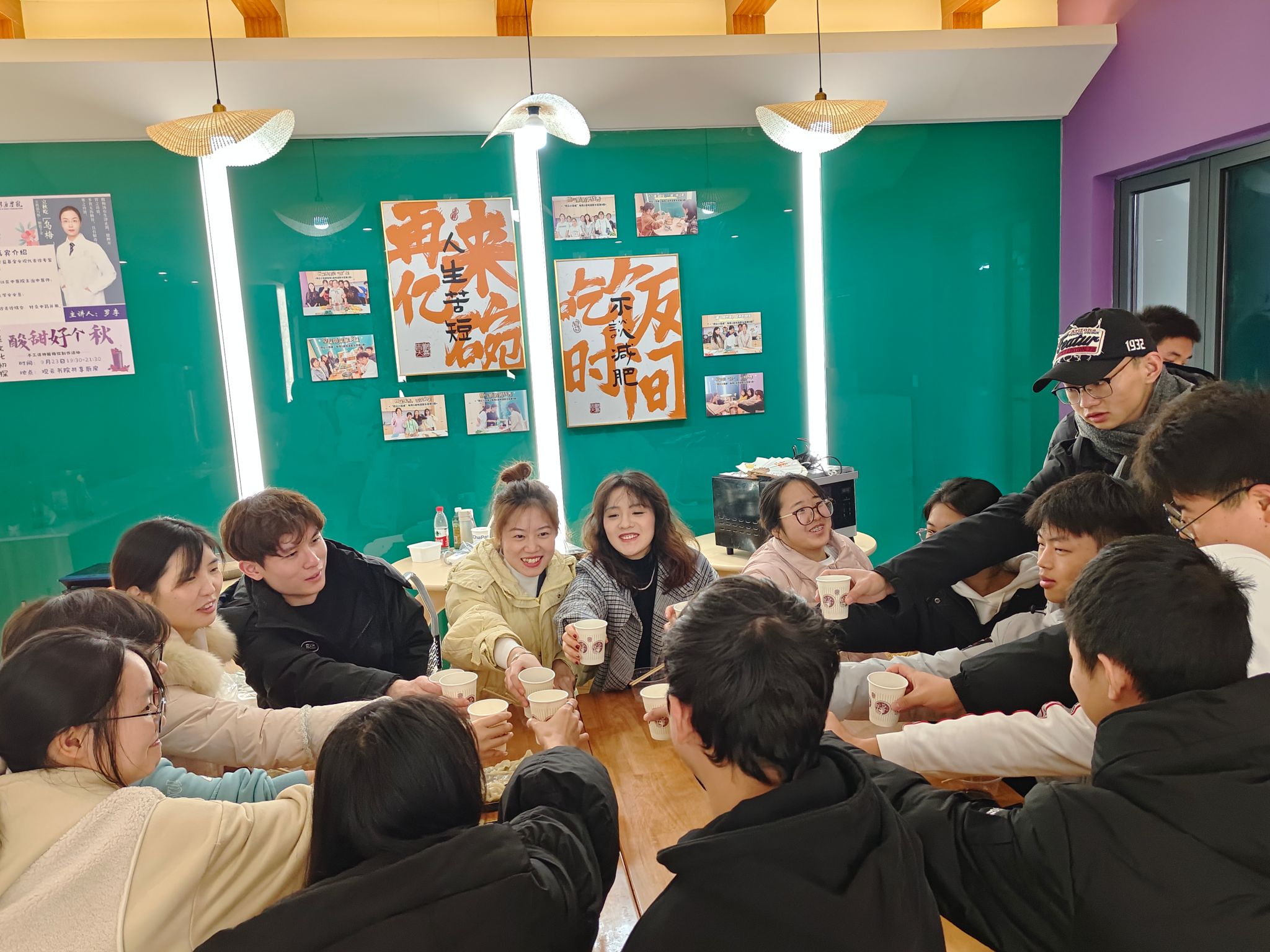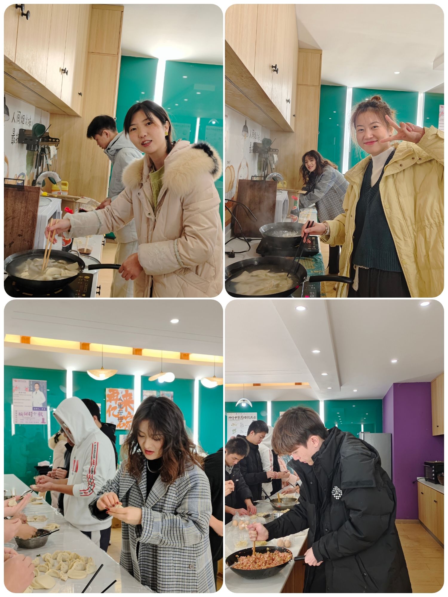 如果说一千个读者眼中会有一千个哈姆雷特,那么在几十个同学手中,饺子也有几十种包法。摊开饺子皮,拌上馅料,有的饺子圆嘟嘟,面皮都快撑破了;有的饺子扁扁的,好像没吃饱就要下锅了;有的长的精巧玲珑,都不舍得戳破。饺子在同学们的精心制作下还真是各有各的精巧,各有各的特色。同学们边包饺子,边聊天,增进彼此间的认识,加深互相了解。在劳动的过程中拉进了彼此之间的距离,同时也认识了新的朋友。在一片欢声笑语中,饺子也下锅煮好了,同学们洋溢着幸福的笑脸,“异”起举杯庆祝今日的团圆。