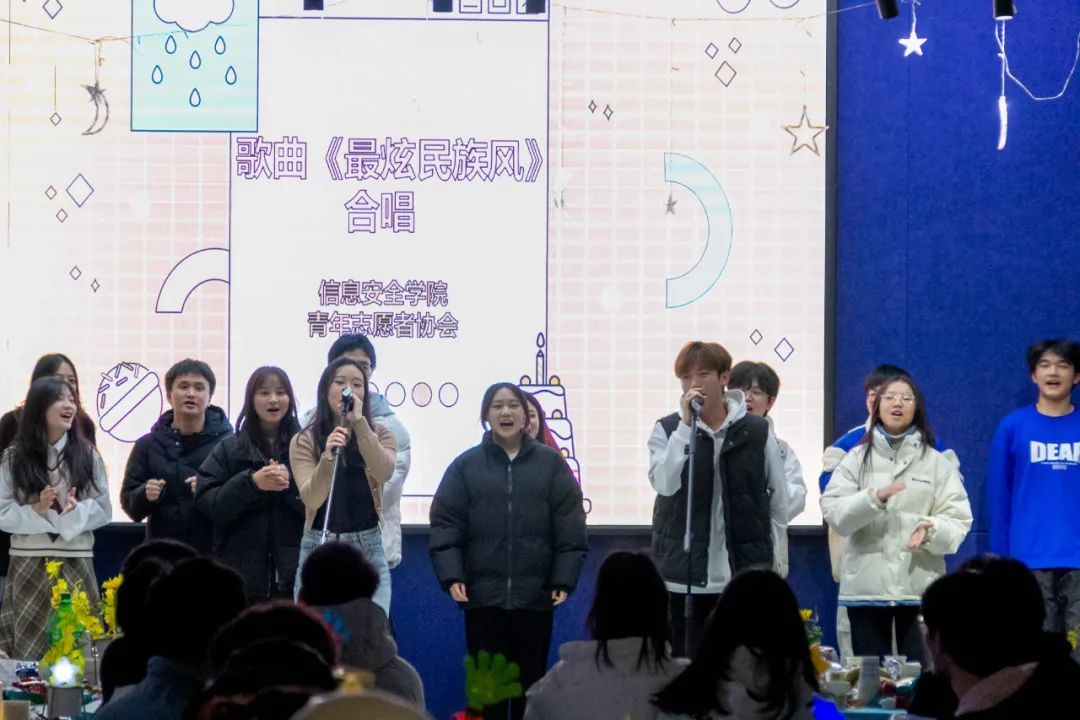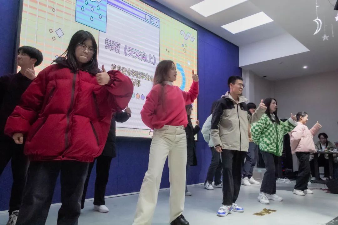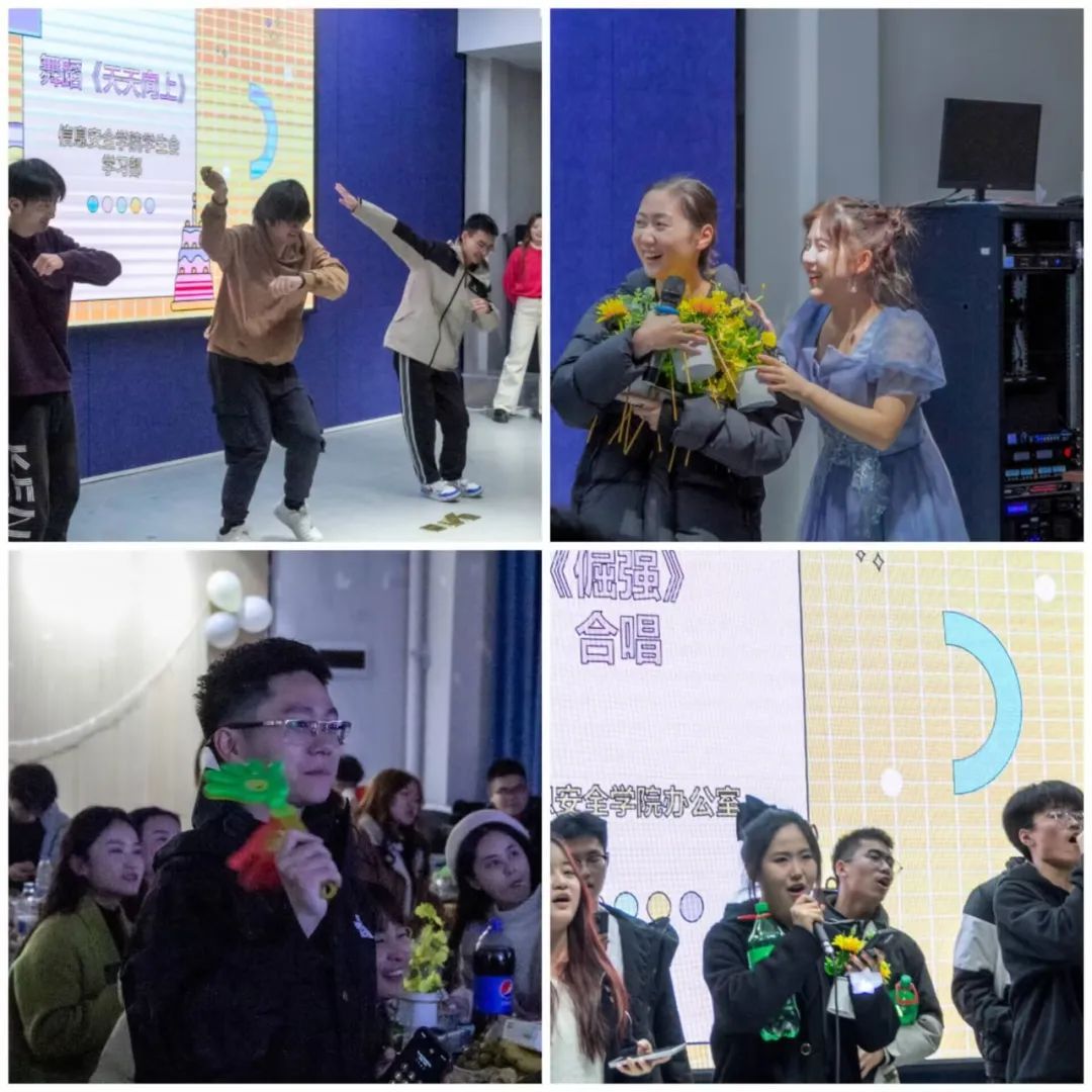文艺部的《我爱文艺部》带来不一样的风味,就业创业的舞蹈《相亲相爱》展示了属于他们的风采,权益生活部的《平凡之路》邀请了几位部长一起上台歌唱,学习部的《天天向上》展现了他们对未来的期待,体育部的《高山低谷》,办公室的《倔强》突出了信安学子不屈服于困难的精神!