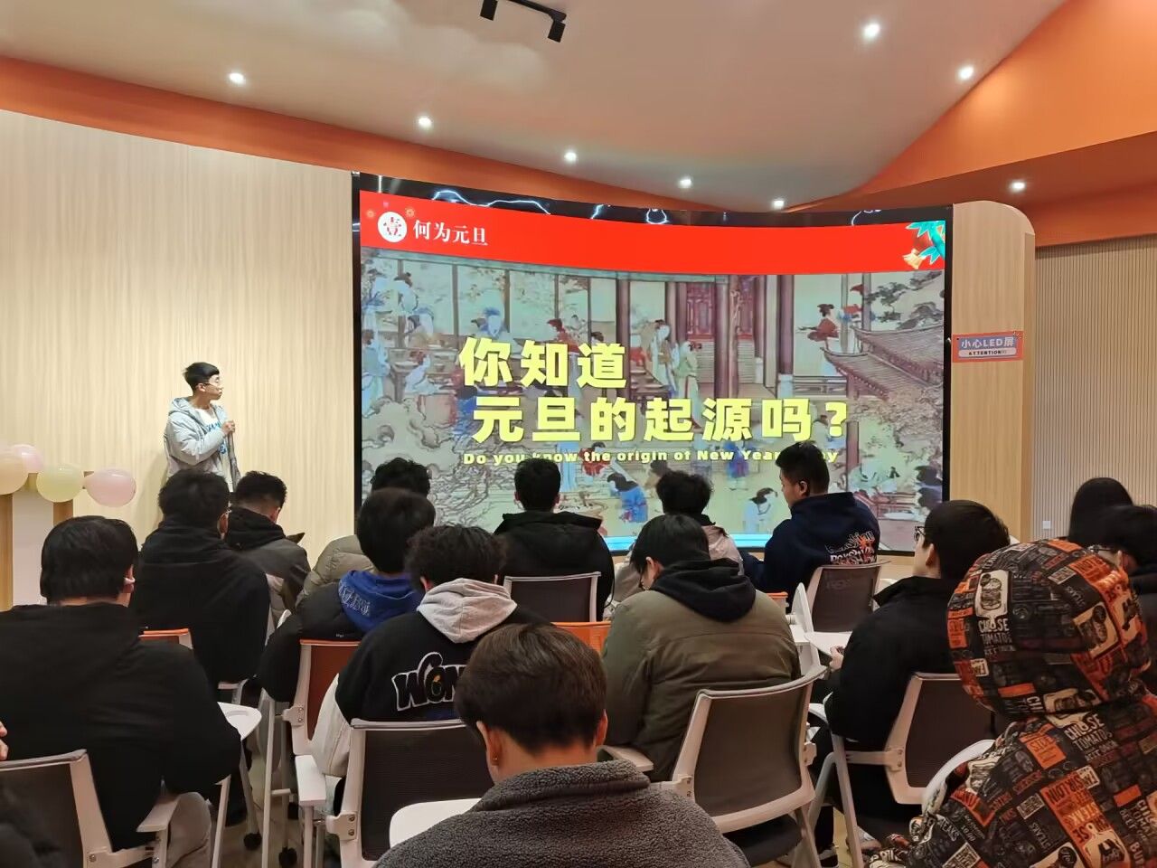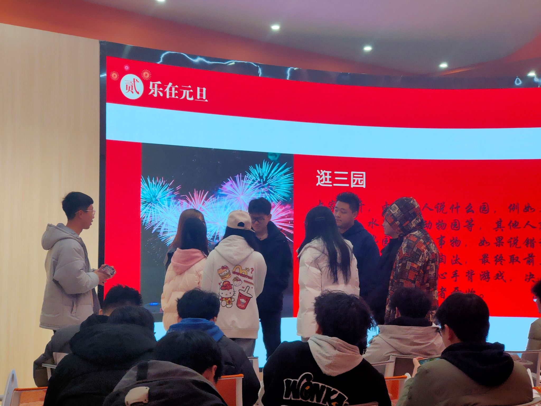 活动前期,工作人员对活动进行了紧锣密鼓的筹备,随着时间的推移,活动也正式被推上日程。经过了充足的准备以及排练,活动也正式到来。随着活动开始,主持人李昊首先向学生介绍了何为元旦,让学生明白元旦的真正含义,接下来便是激动人心的游戏环节。
