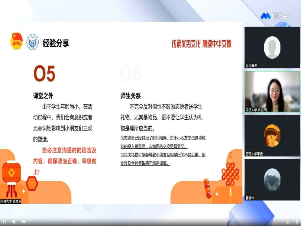 分享智慧,共谋发展,交流心得,共同成长。1月26日由中国光华科技基金会举办的第八季一起云支教活动启动仪式暨志愿者执行培训会在线上开展,我院积极组织志愿者参与大会。