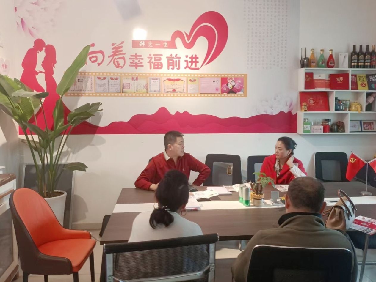 志愿者秦凤杰来到社区进行婚姻公益活动。红色的灯笼高挂在屋檐下,金色的囍字装饰在墙壁上,整个场地弥漫着喜庆和吉祥的气息。为弘扬志愿精神和传授婚事技能知识,帮助更多人了解婚事历史,学习婚事知识。此次活动围绕婚事开展,从思想上,通过列举婚姻中的不良行为和话语,教会大家怎样树立起正确恋爱观,为家庭和未来托起一片蔚蓝的天空。志愿者秦凤杰说:“对于我来说,这不仅仅是一次简单的参与,更是一次深入了解中国婚姻文化的独特机会。婚姻不仅仅意味着两个人的结合,更是两个家庭的融合。婚礼上的每一个细节,都蕴含着对未来美好生活的期许。”
