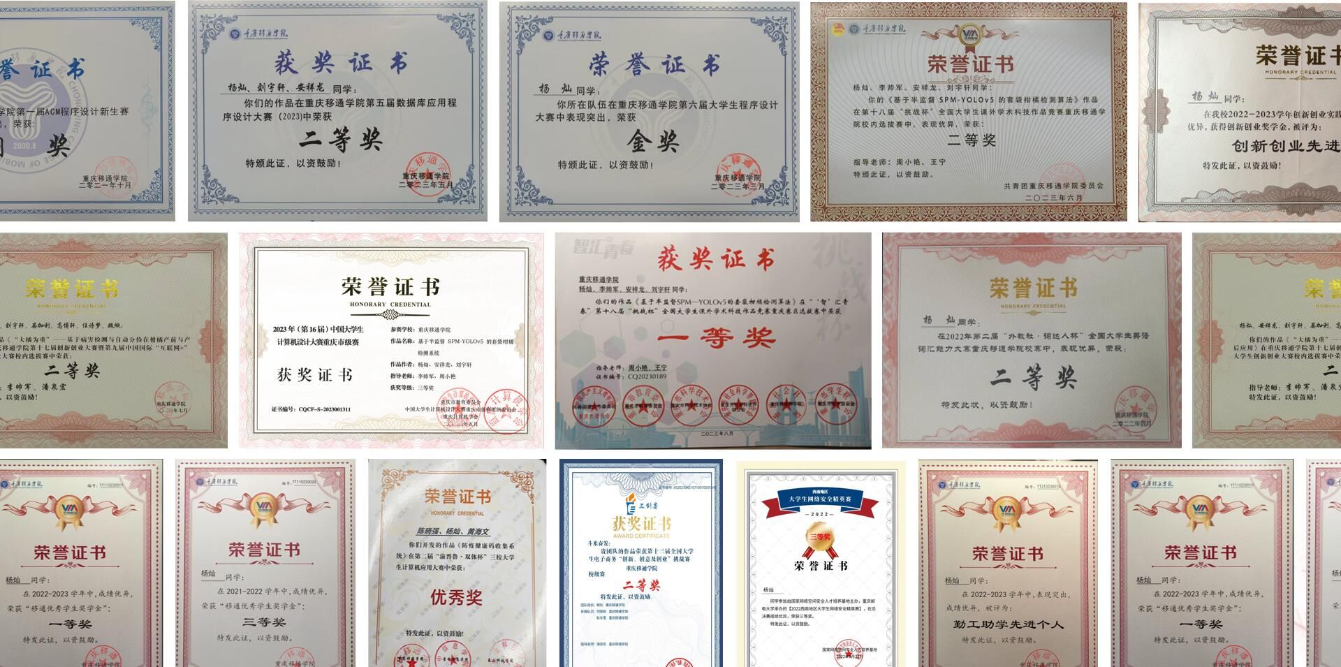 在我校“四位一体+双院制”育人模式的培养下,杨灿不仅在学科竞赛中取得了深厚的专业知识,还在志愿服务、竞技体育、艺术修养、社团活动方面得到全面培养。她曾担任大数据学院青年志愿者协会负责人,组织校园活动20余项,包括组织诚信月活动,弘扬诚信价值;举办“众心防艾 全民禁毒”安全教育微课大赛,创建无毒无艾的纯洁校园;对接蓝天救援队,宣传紧急救援技能及经验.....不仅如此,作为志愿者,她勤恳务实,乐于奉献。疫情期间对老年人进行疫苗接种宣传动员、去养老中心做义工陪伴老人、劝导同学助力光盘行动,成为2022年智博会志愿者。学校完满教育的多元化教育使她具备了更加广泛的视野和全面的素养。在课堂之外,她通过参与志愿服务和社会实践,拓展了自己的人文关怀和社会责任感。这样的全面素养不仅在她个人的成长中起到了推动作用,也使她在团队协作和社会责任方面表现出色。