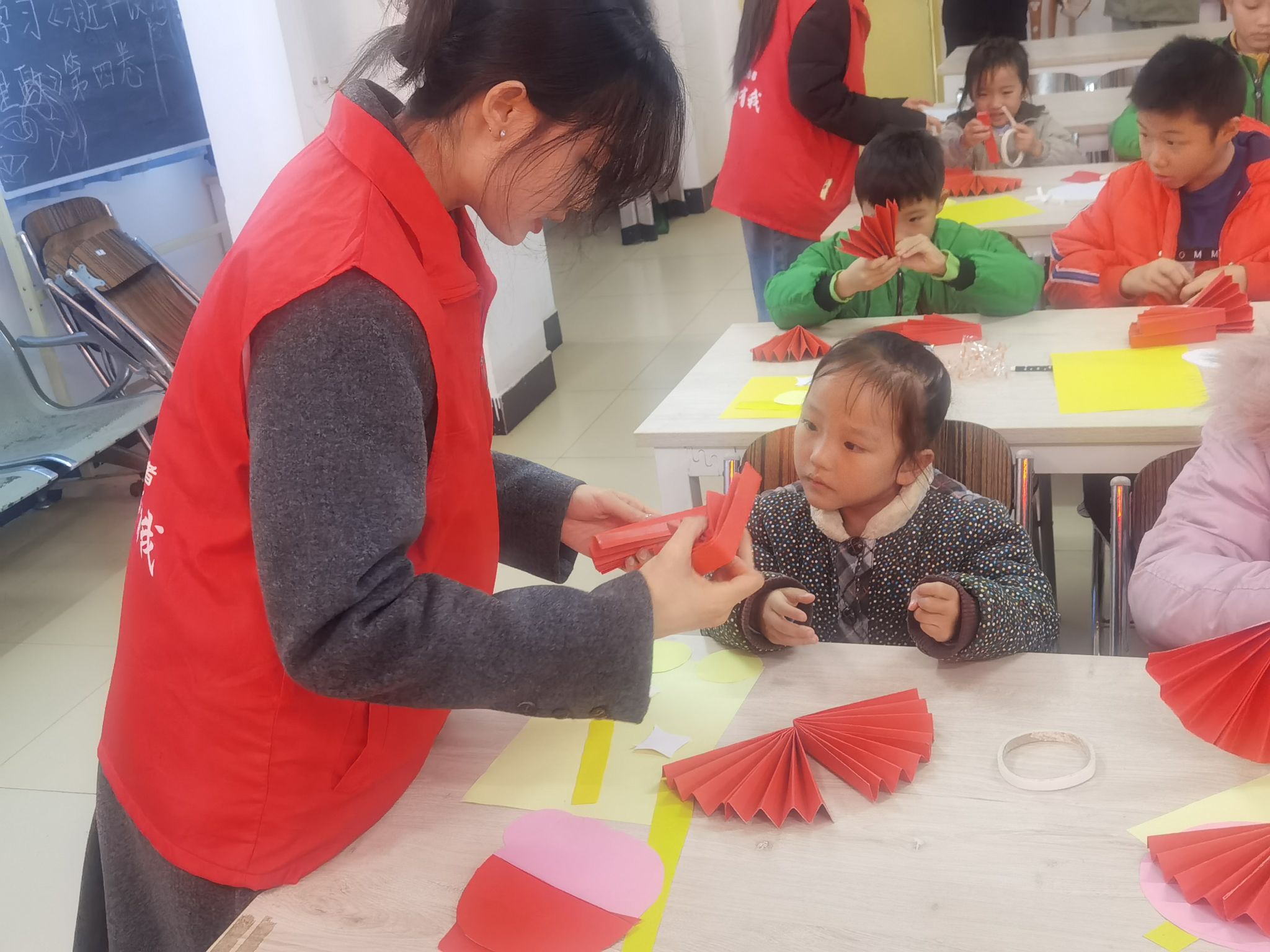 志愿者黄缨琳前往广西壮族自治区南宁市江南区菠萝零社区青空间,与社区工作人员共同举办“福气冲天·共赴龙年”迎新春创意手工活动,通过提问的方式让小朋友记起有关春节的回忆,再进行科普,让小朋友了解到春节习俗以及春节的由来,或是通过手工制作财神让小朋友融入春节的氛围当中,感受中国传统节日的无限魅力。