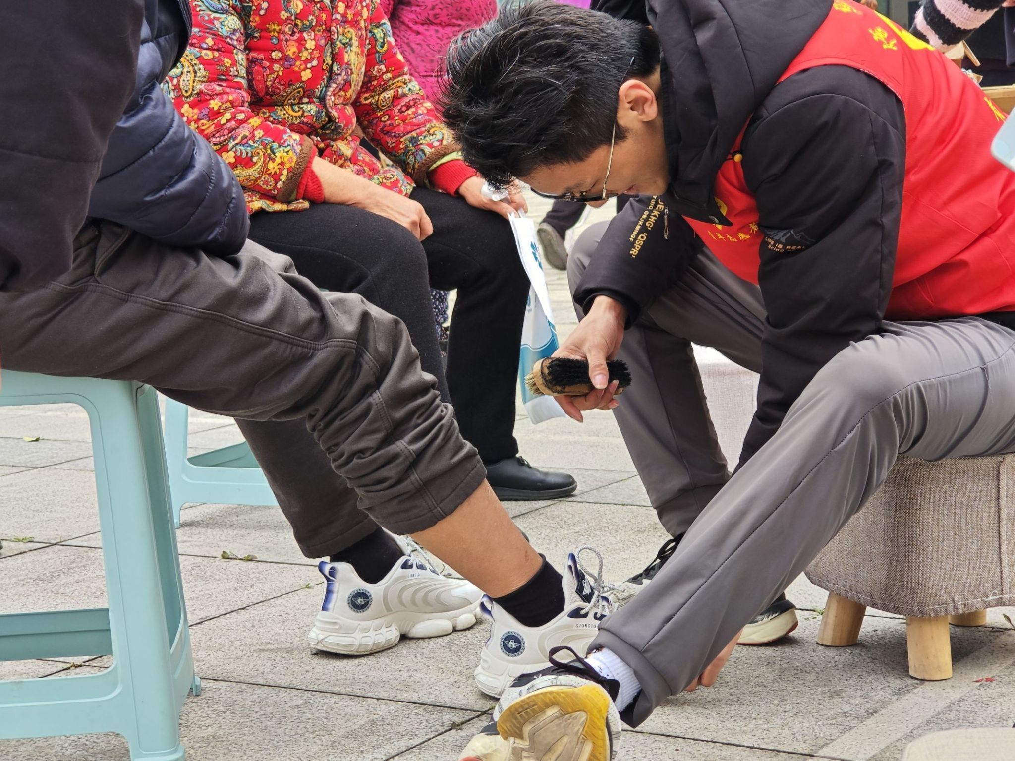 生活服务区域,志愿者为居民提供了一系列贴心的服务:为社区居民磨刀、擦亮皮鞋,为老年人拍摄照片。志愿者磨砺每一把刀具,确保每一把刀具都能够恢复锋利;精心擦拭每一双皮鞋,使其恢复光泽;为社区的老人们捕捉下他们脸上的笑容,为他们留下了宝贵的记忆。