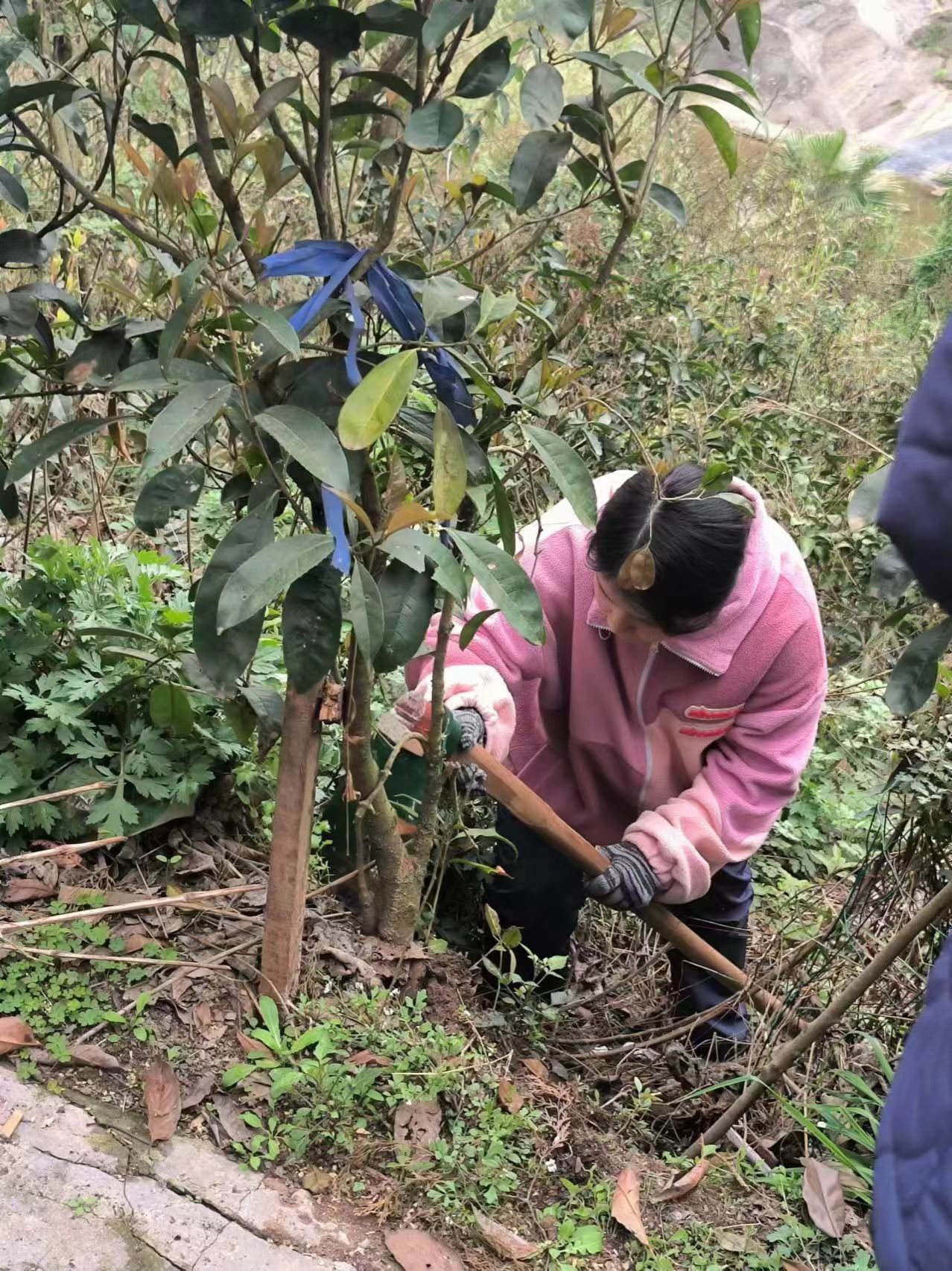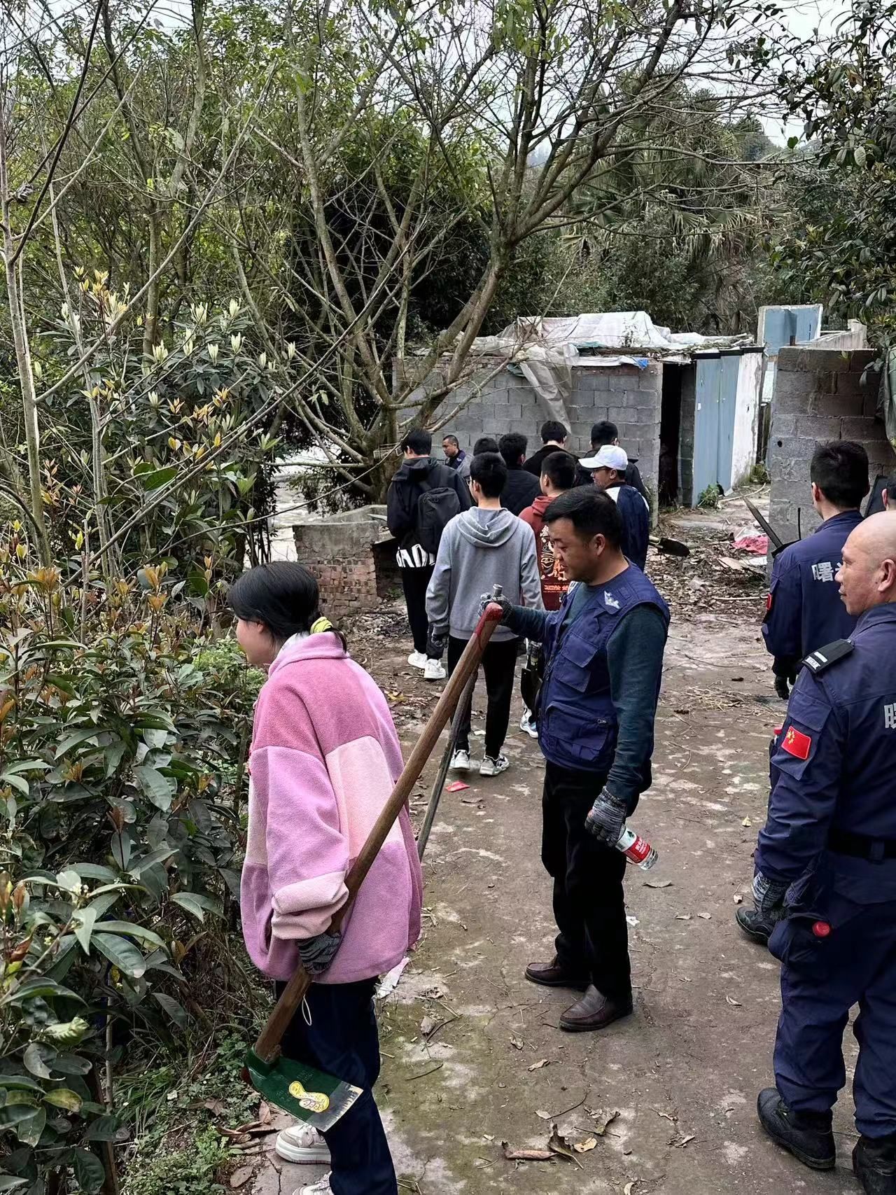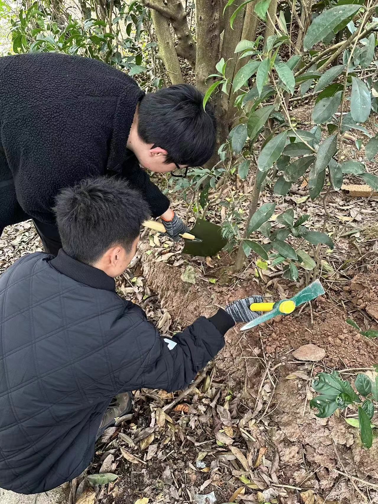 活动当天,来自物联网二班、三班的学生志愿者与异科班张桃老师一起前往曙光救援队“老四”的苗圃里,选取合适的树苗,进行移植。