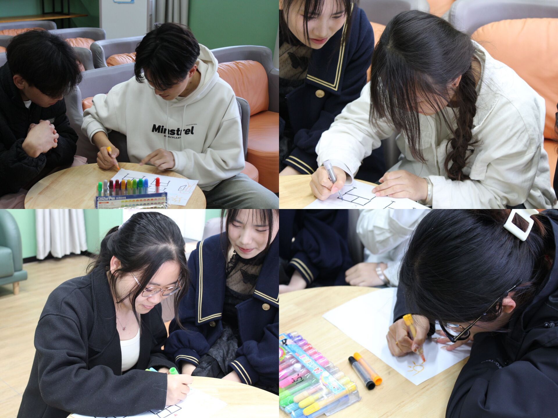 活动伊始,活动领导者及主持人温朝一老师对本次活动进行了简单的阐述:本次团辅活动主要以“幸福”为主题,通过对绘画心理疗法的简单应用,从肢体互动和语言表达两方面对参与者的潜在情感进行发掘,用轻松愉快的方式构建情境,使参与者在放松的状态下感知自己的幸福,提高主观幸福感,从而使成员们获得幸福和对人生的思考。