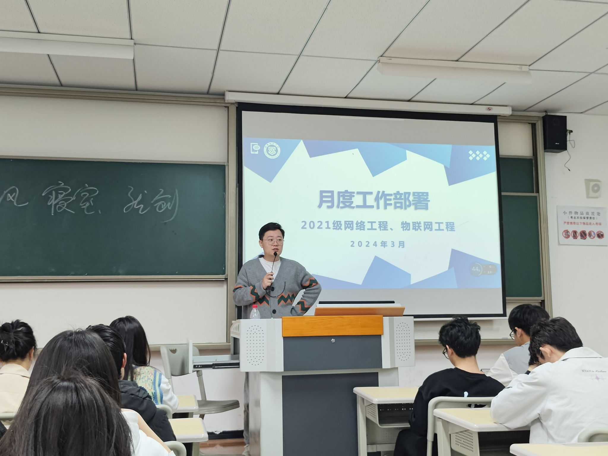3月27日,王辅崇老师在仁者楼306召开了2021级网络工程、物联网工程月度工作部署大会。本次大会以“安全、学风、寝室、就创”四大关键词为核心,全面部署了接下来的工作重点和方向。