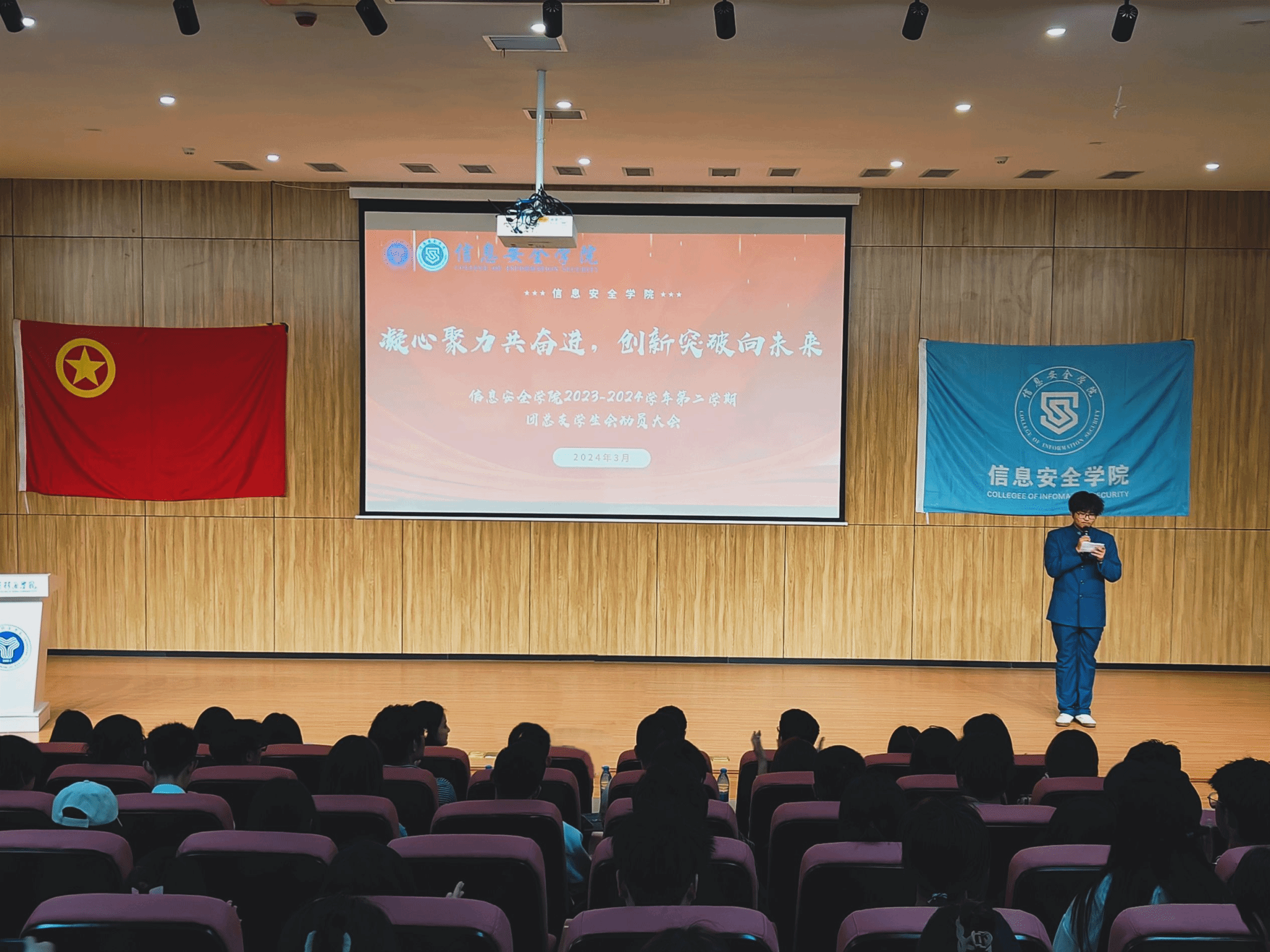至此,信息安全学院2023-2024学年第二学期团总支学生会动员大会圆满结束。本次动员大会增强了大家的工作动力,鼓舞了大家的士气,为学院团总支学生会新学期的工作奠定了坚实的基础。愿大家以此次大会为契机,以更加饱满的热情投身到新学期的工作中去。
