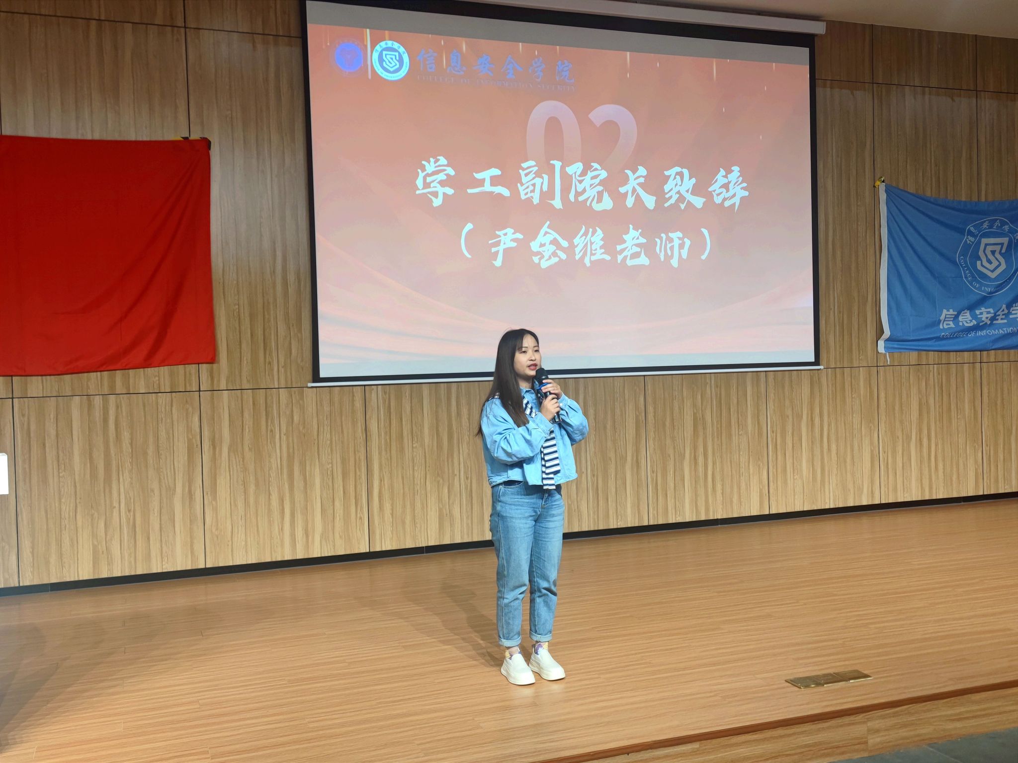 为信息安全学院团总支学生会在新学期开好局,起好步,调动每一位成员的积极性,使各项工作稳步开展,信息安全学院于2024年3月28日12:20在贤者楼131召开以“凝心聚力共奋进·创新突破向未来”为主题的团总支学生会动员大会。参与本次大会的有信息安全学院学工副院长尹金维老师、团总支书记肖琳老师、各部门指导老师和团总支学生会全体成员。