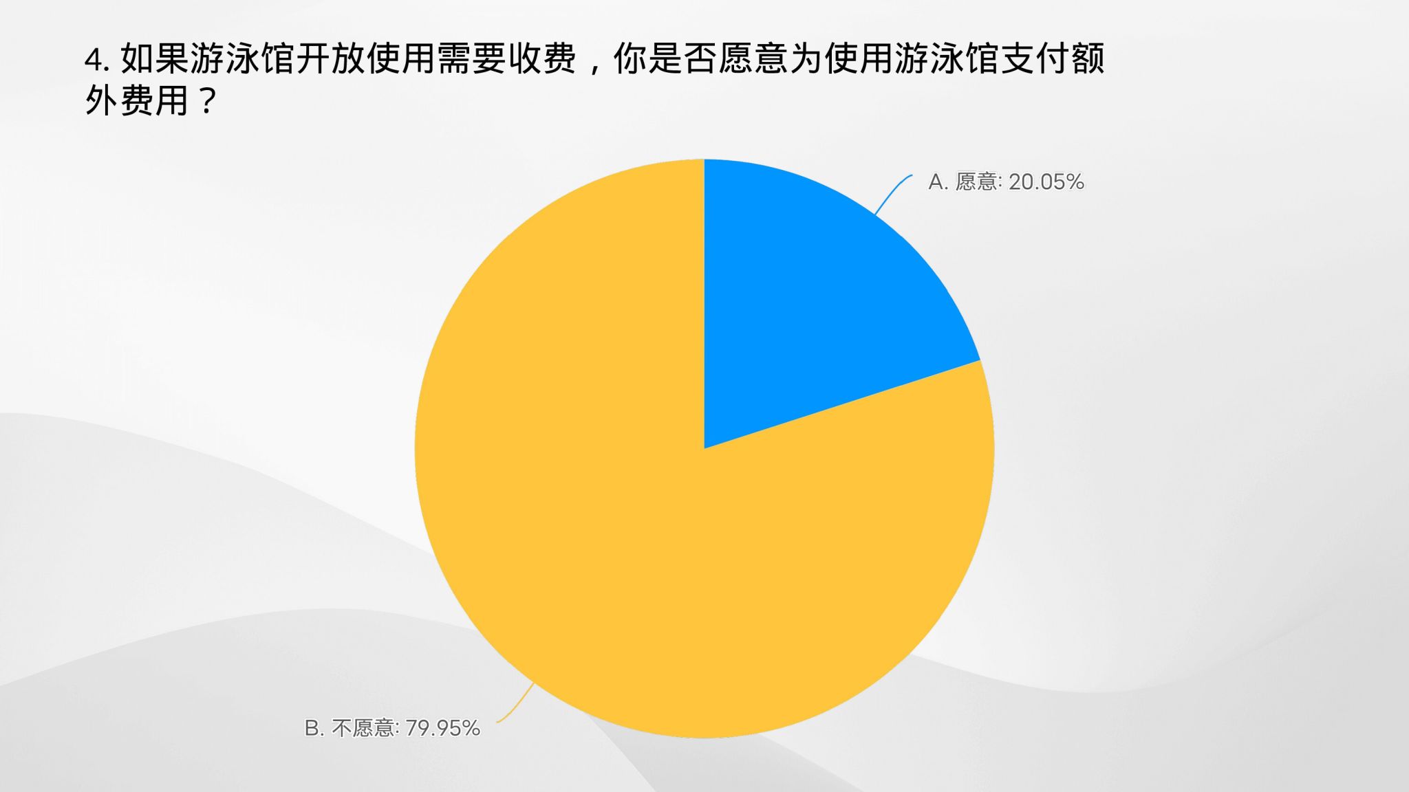 调查旨在评估大学生群体对于游泳馆是否收费、开放时间段以及开设相关活动等的态度情况。参与此次的调研的人数为404人。