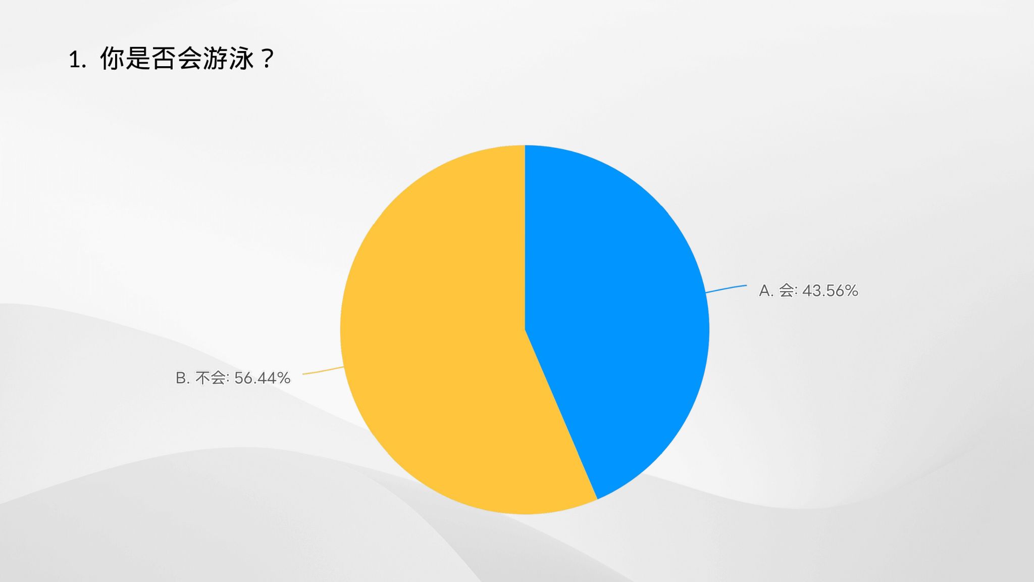 超过一半的同学不会游泳,会游泳的只占43.56%。