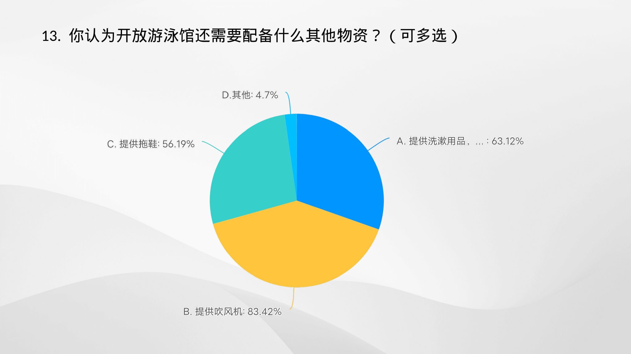(二) 绝大部分同学希望游泳馆提供配套设施,比如吹风机等服务用品,以提供更好的使用体验。