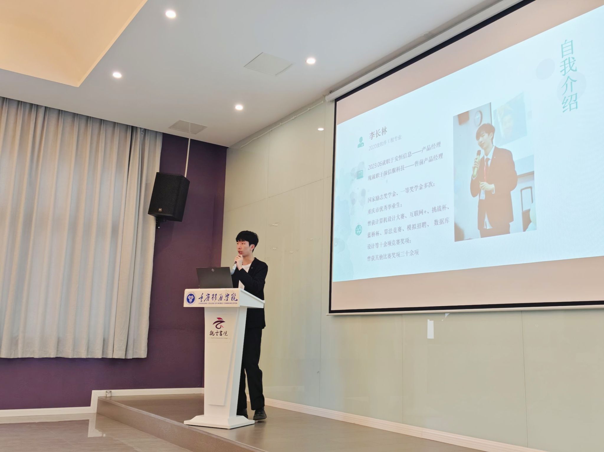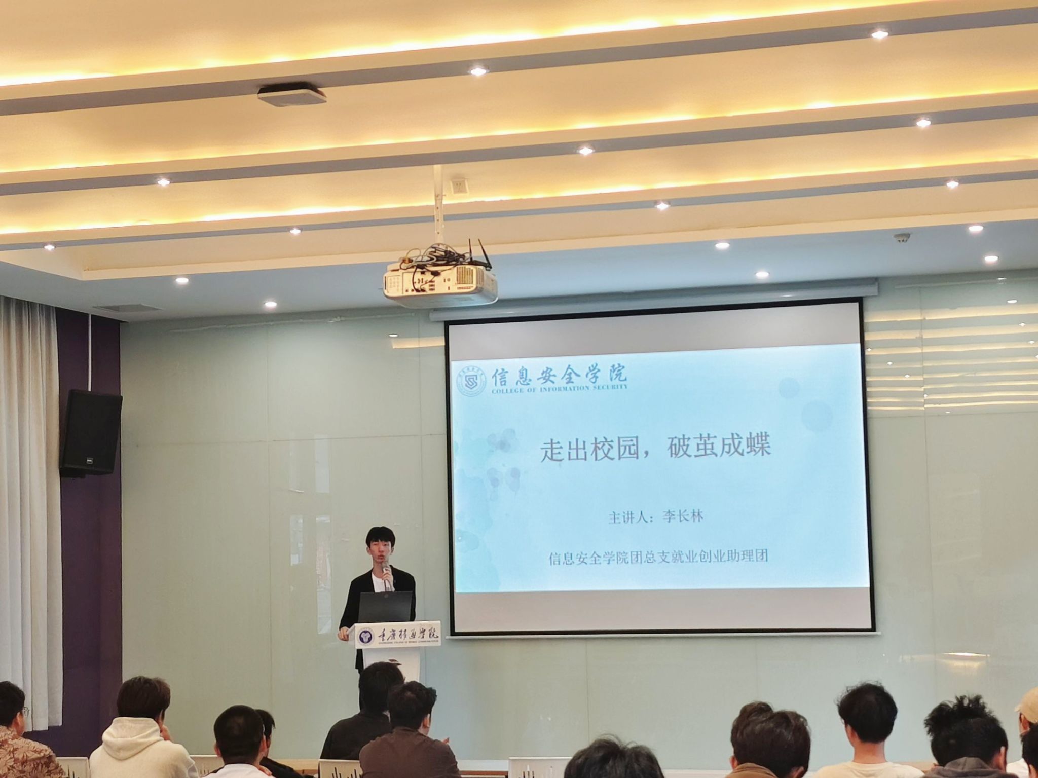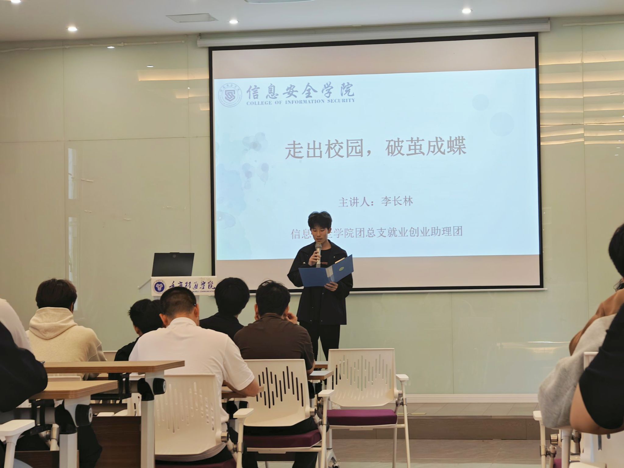 为帮助大学生更加了解软件工程行业的市场综合需求以及就业要求等相关信息,由信息安全学院团总支就业创业助理团举办的走出校园·破茧成蝶——信息安全学院“学长学姐有话说”系列活动第一期于2024年4月10日16:00-18:00在观云书院·冬至多媒体教室开展。本次活动的特邀嘉宾为李长林学长,现任杭州安恒信息技术股份有限公司产品经理。活动共计60人参与,由李佳津同学主持。