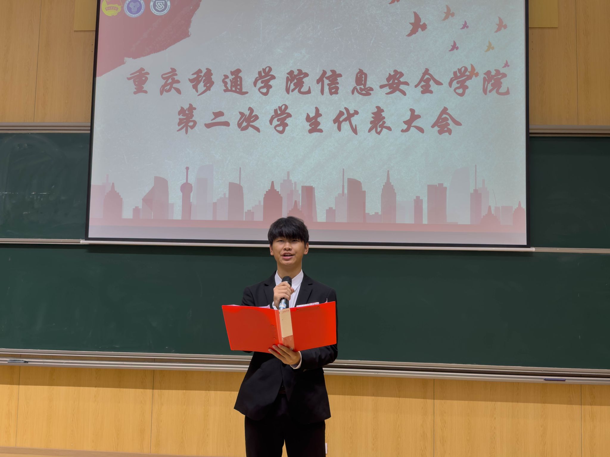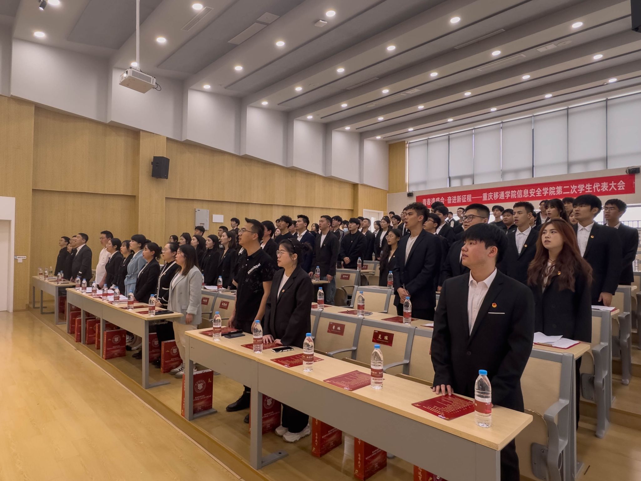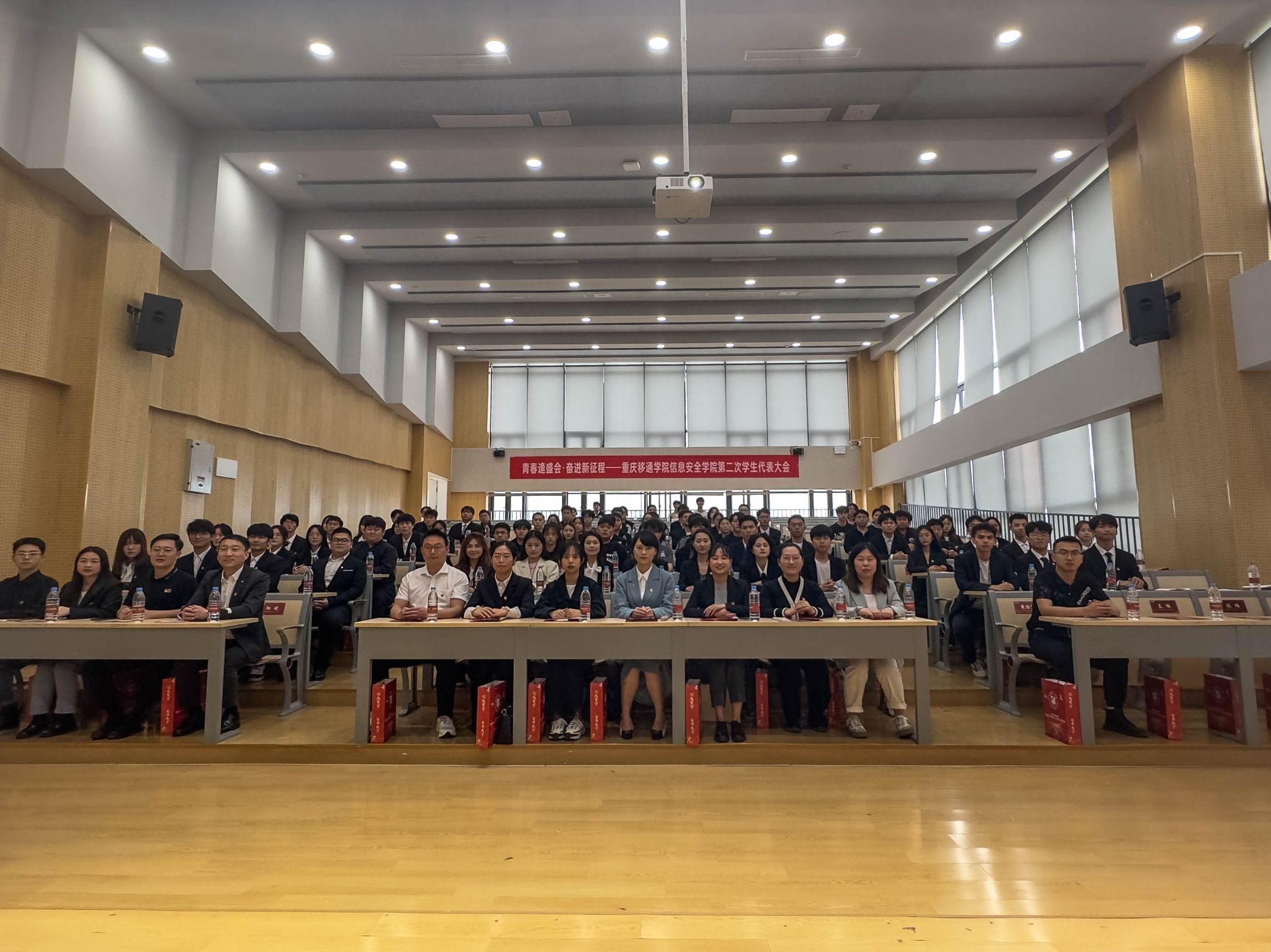 青春逢盛会,奋进新征程。2024年4月12日12:20,重庆移通学院信息安全学院第二次学生代表大会在玉棠书院阶梯教室隆重召开。出席本次大会的有信息安全学院主持工作副院长王宁、学工副院长尹金维,校团委学生会指导老师曹誉莹,信息安全学院软件教研室主任邓秋菊、信息安全教研室主任周小艳、物联网教研室主任郑慧娟、信息基础教研室主任杨宏志、网络工程教研室主任黄海军、学工办主任邹健、团总支书记肖琳。列席本次大会的还有信息安全学院9名教师代表及62名学生代表。
