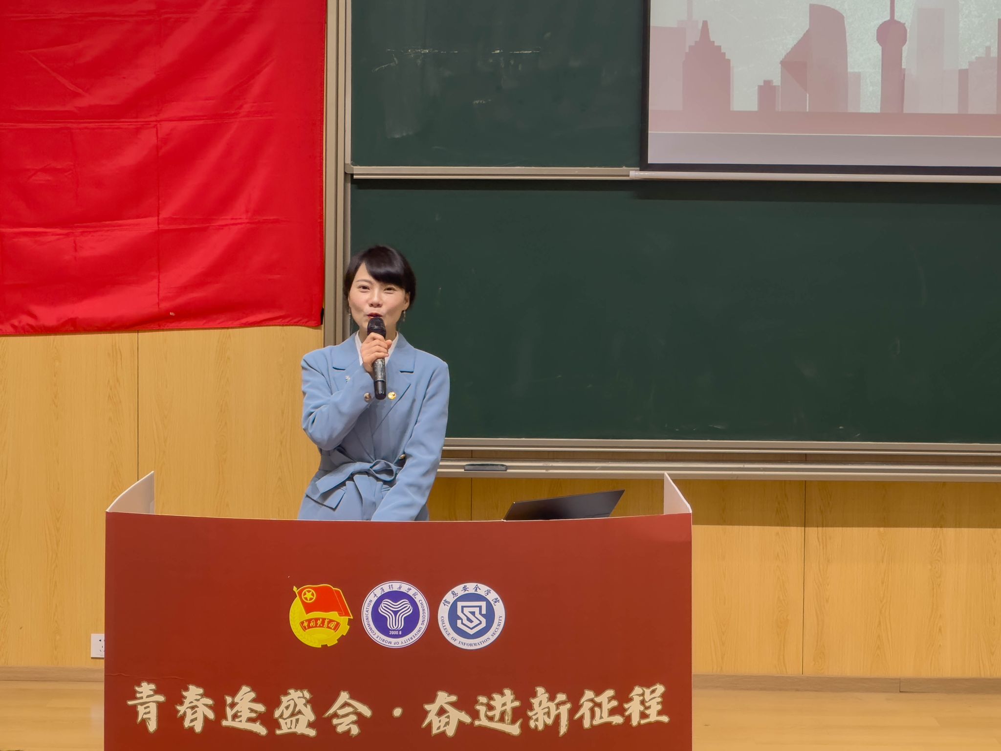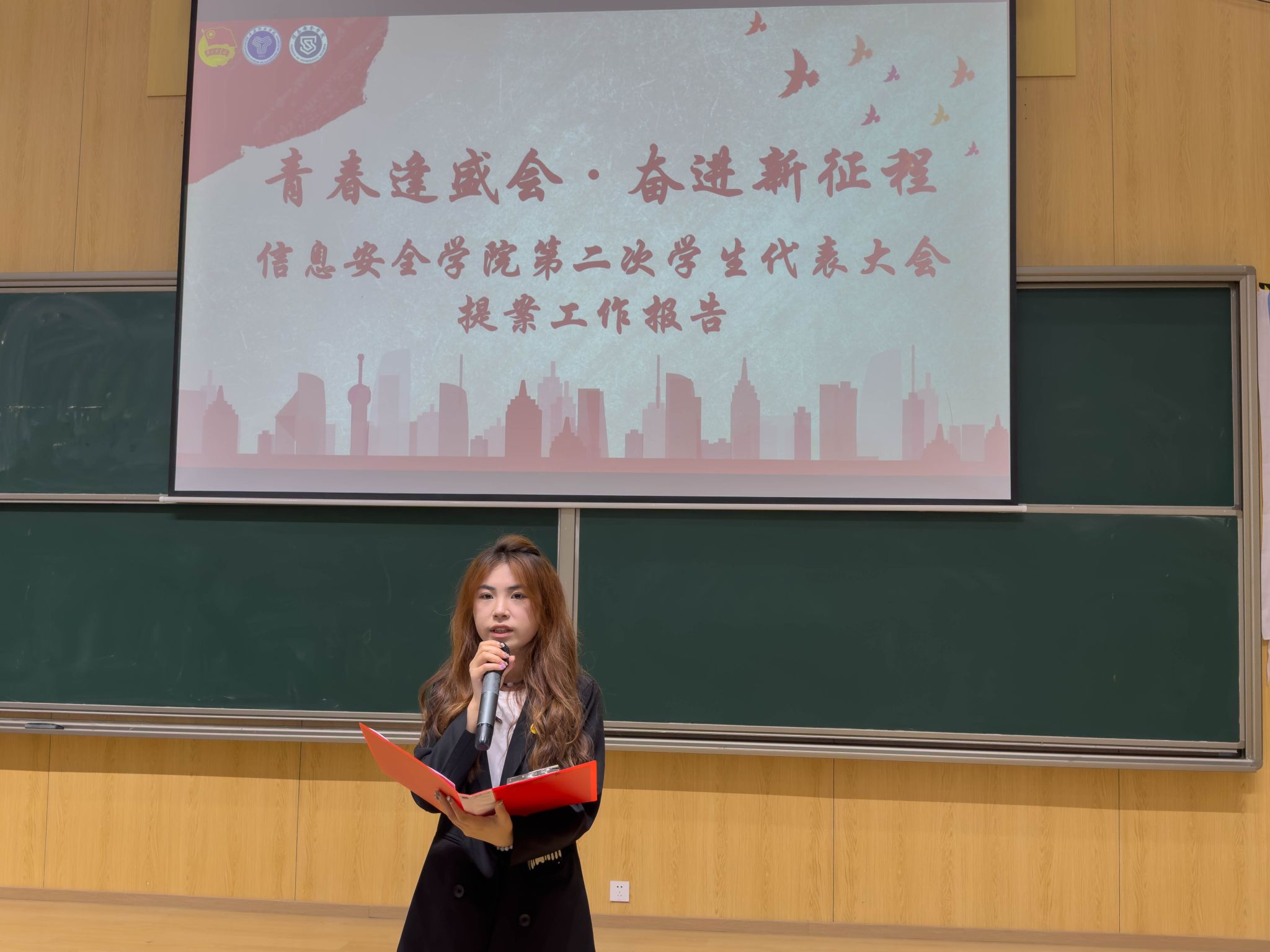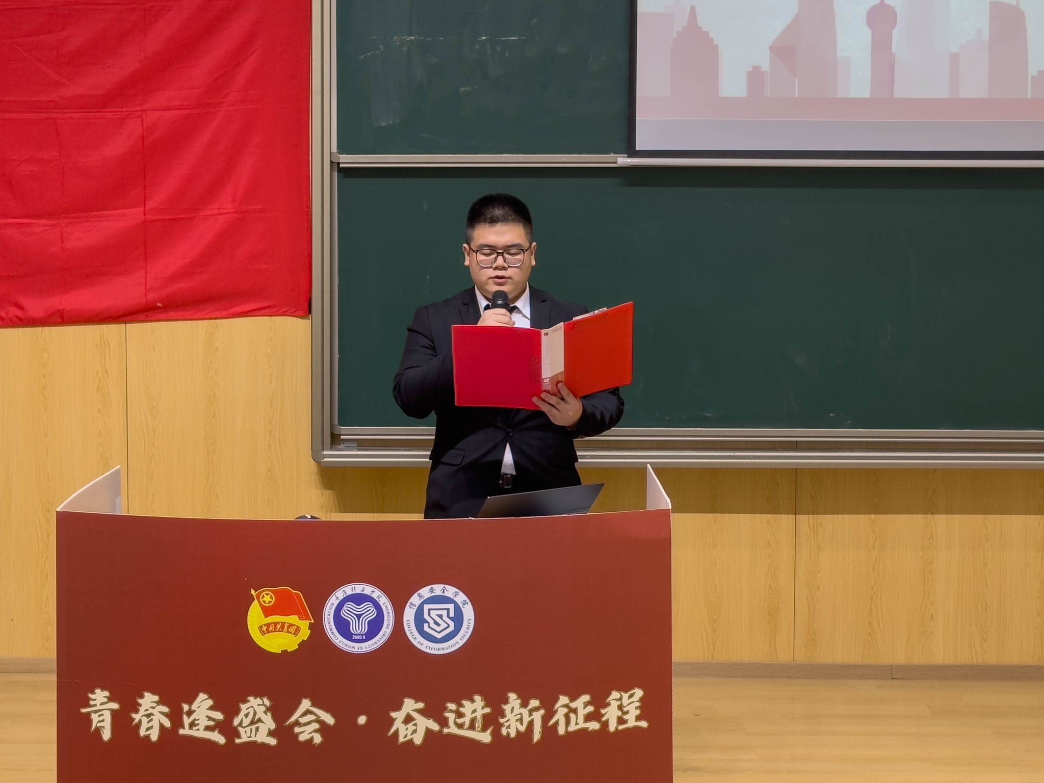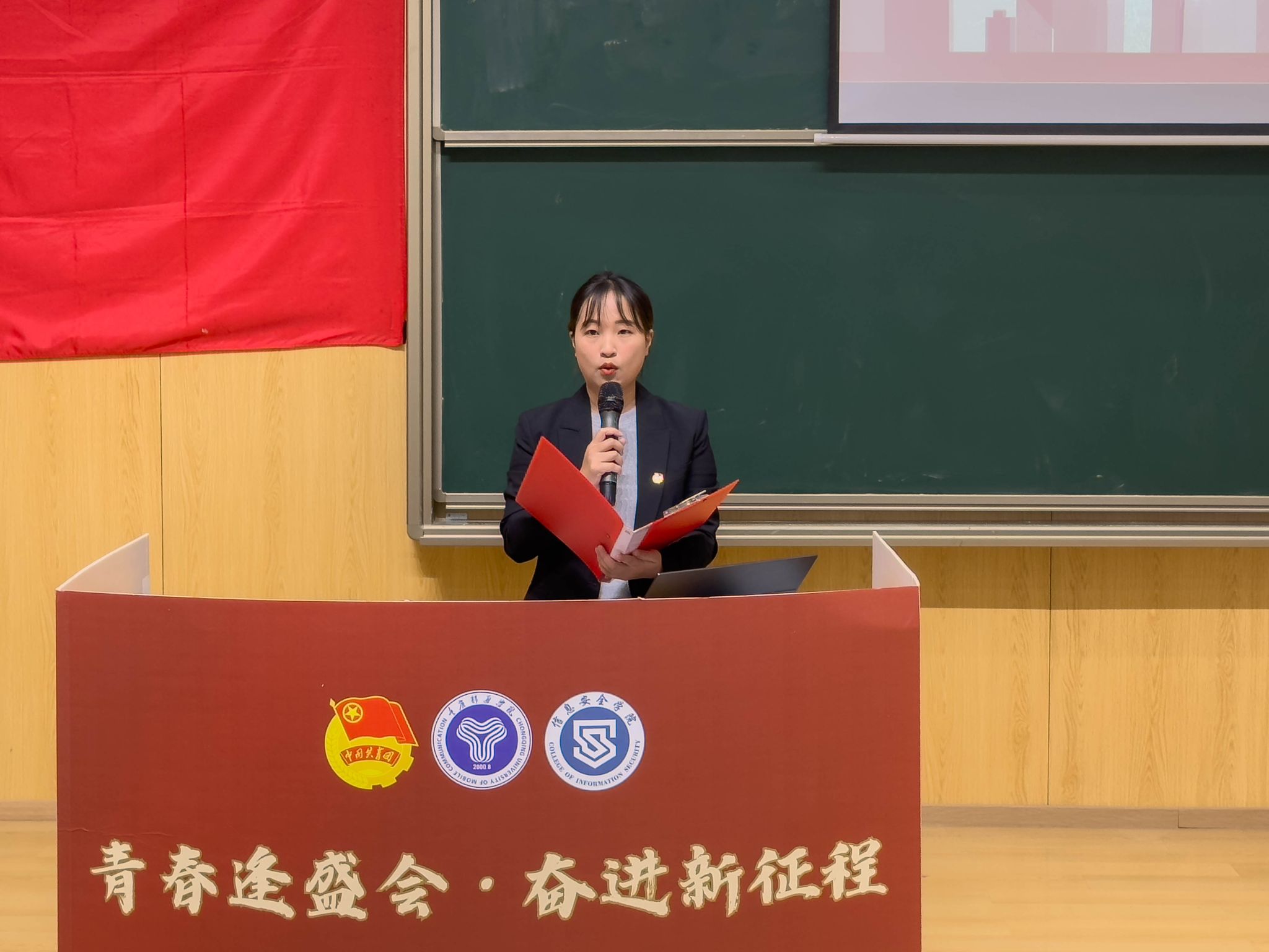 青春逢盛会,奋进新征程。2024年4月12日12:20,重庆移通学院信息安全学院第二次学生代表大会在玉棠书院阶梯教室隆重召开。出席本次大会的有信息安全学院主持工作副院长王宁、学工副院长尹金维,校团委学生会指导老师曹誉莹,信息安全学院软件教研室主任邓秋菊、信息安全教研室主任周小艳、物联网教研室主任郑慧娟、信息基础教研室主任杨宏志、网络工程教研室主任黄海军、学工办主任邹健、团总支书记肖琳。列席本次大会的还有信息安全学院9名教师代表及62名学生代表。