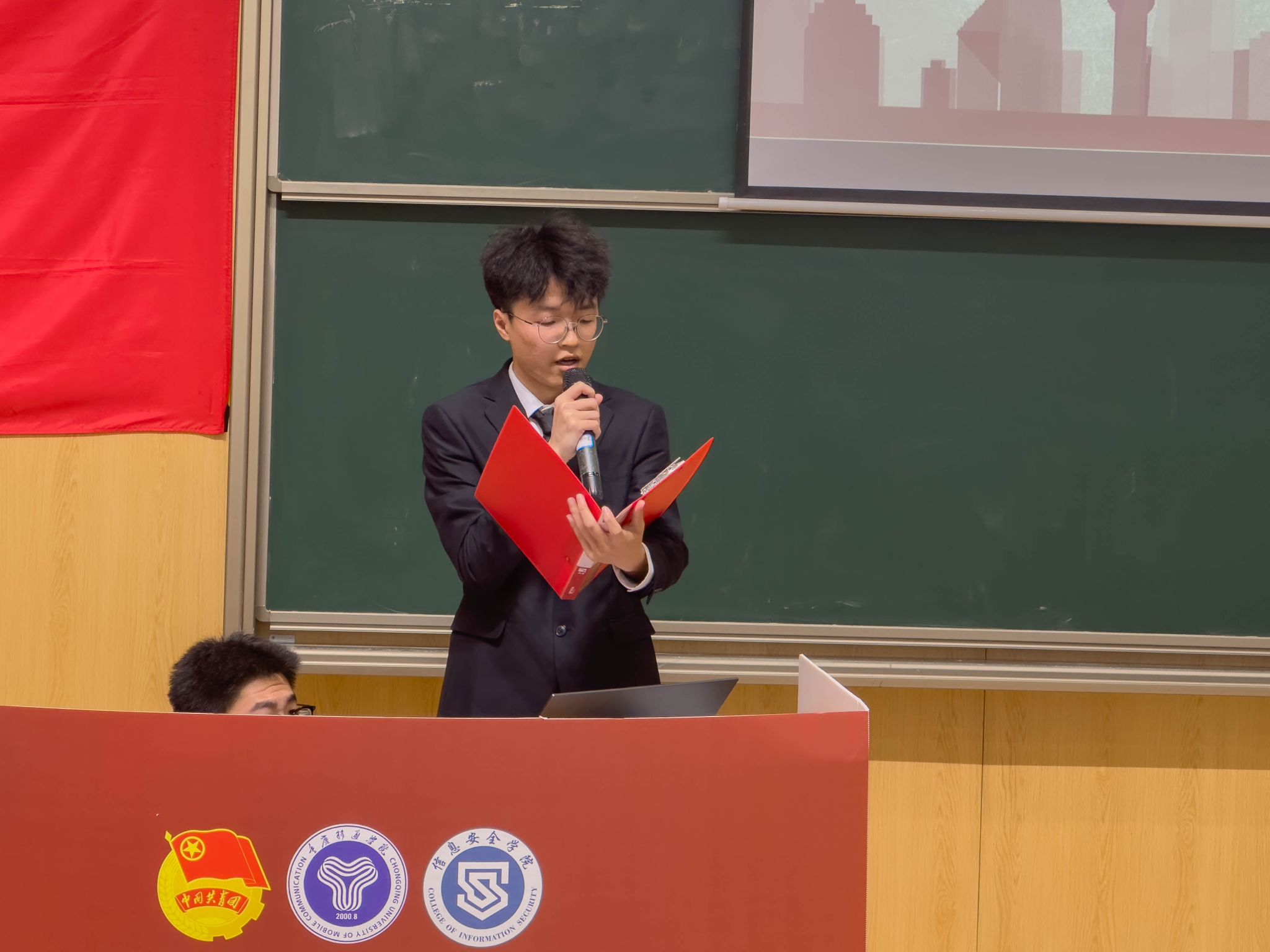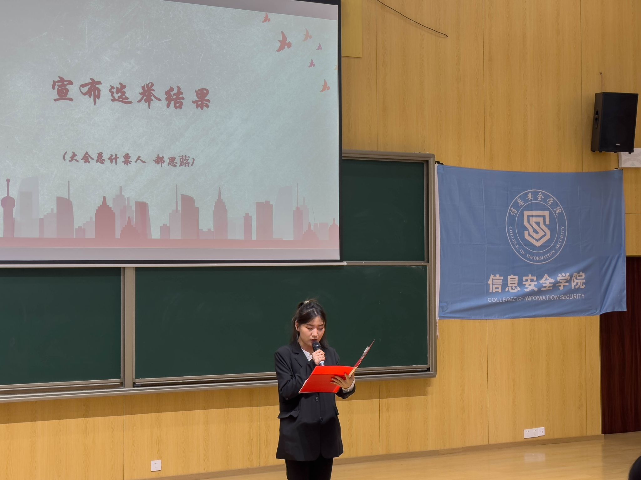 秘书处秘书长郑昊宣读《重庆移通学院信息安全学院第二次学生代表大会主席团成员选举办法》