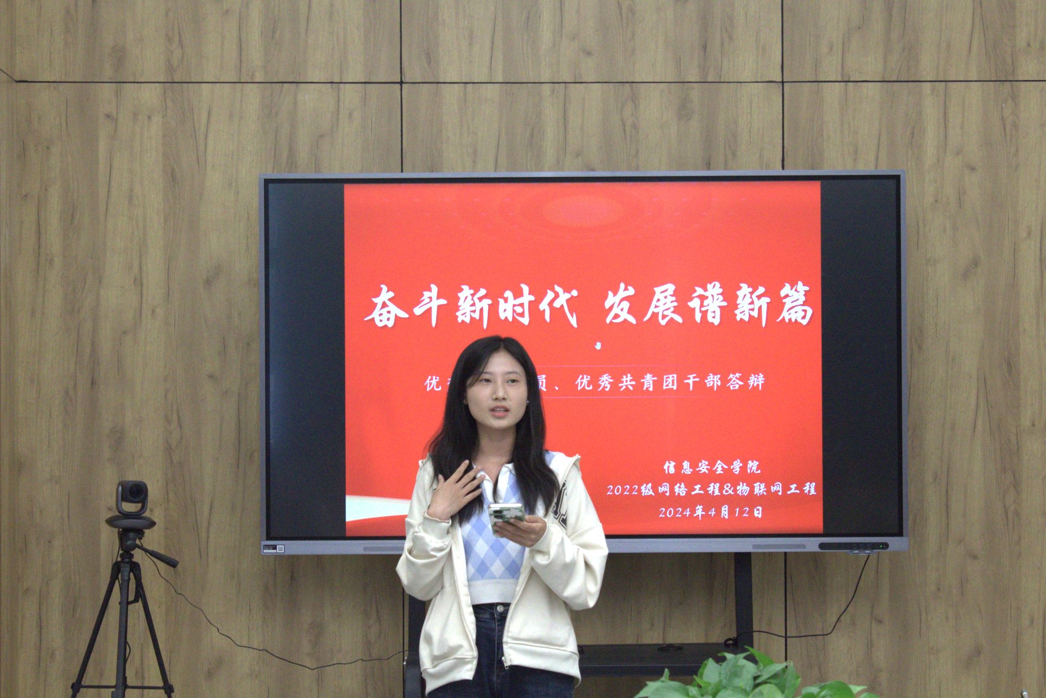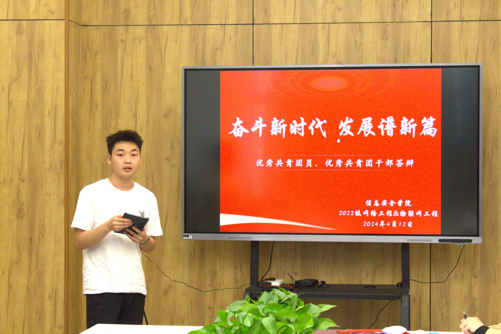 为加深对共青团作为党的助手和后备军的认识,展现共青团员的模范作用,以及大力弘扬五四精神,营造各团支部成员争先取优的浓厚氛围,2024年4月13日下午16:00,以信息安全学院网络工程物及联网工程中十二名候选人为主的“优秀共青团员&优秀共青团干部答辩”在贤者楼双体会议室成功举办。本次答辩由辅导员温朝一老师组织开展,由网络工程和物联网工程共七个班的二十一名同学担任评委。