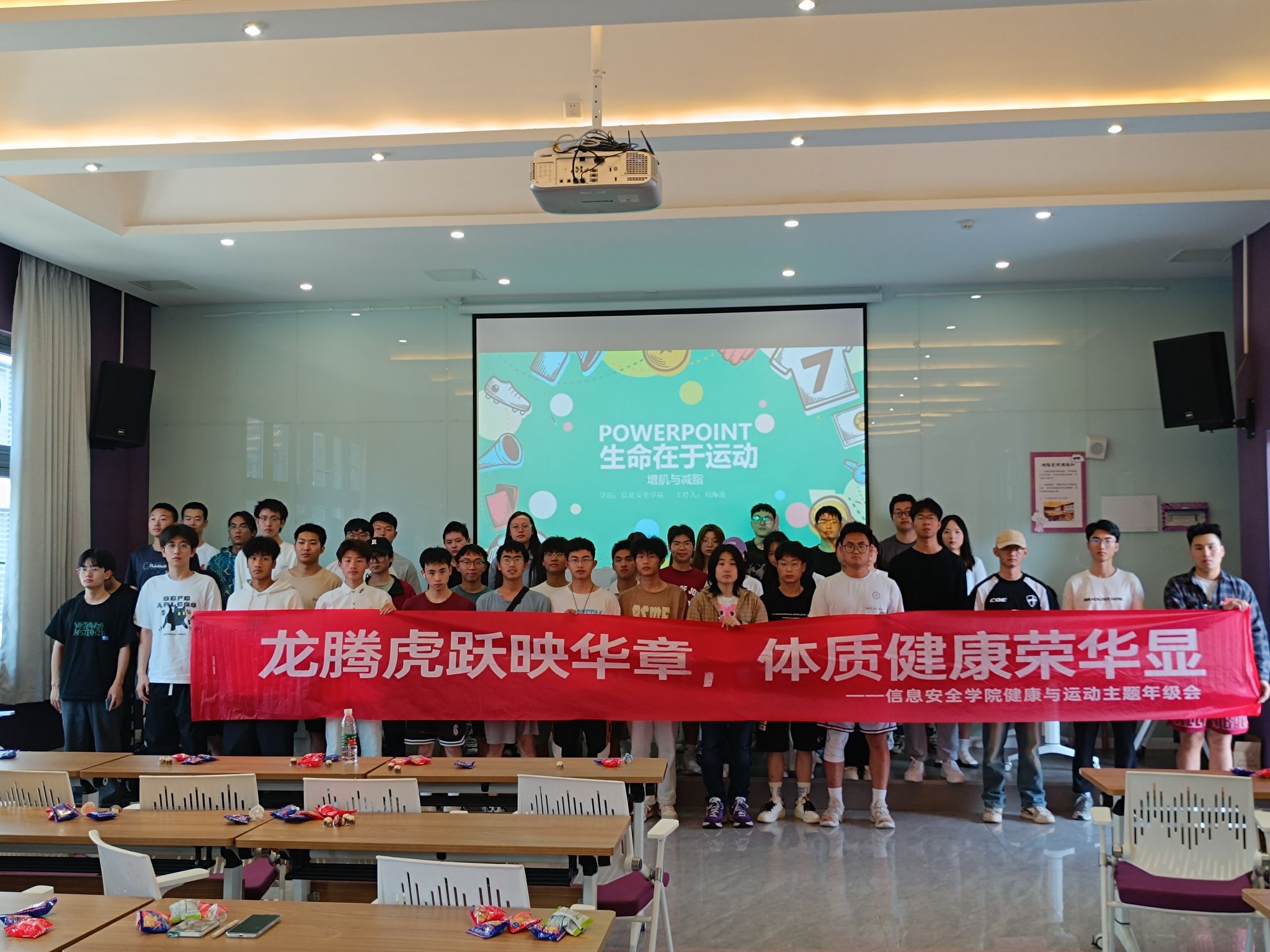 青少年身体素质事关个人成长、家庭幸福、民族未来,积极参与体育健身运动,强健体魄、砥砺意志,凝聚和焕发青春力量,是每个青年应有的职责。为 此,于2024年4月19日16时,信息安全学院邹健老师带领的2021级软件工程7-12班与信息安全学院焦梦玲老师带领的2023 级信息安全1 - 4班、区块链工程1 - 2班特于观云书 院联合举办了“龙腾虎跃映华章,体质健康荣华显”健康教育主题年级会。