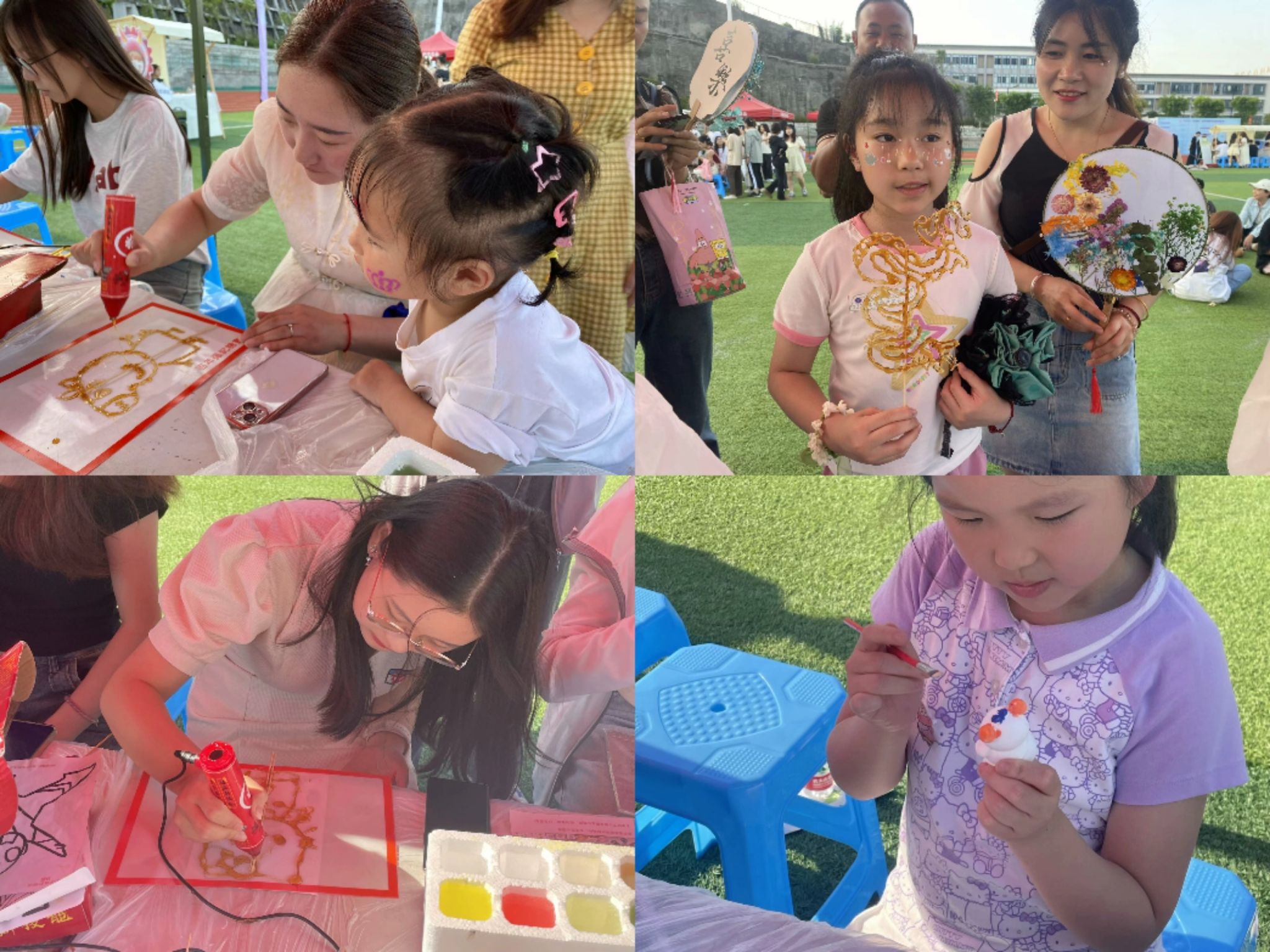 活动开始后,得益于前期的广泛宣传,前来参与的学生和小朋友。糖画以它的独特之处吸引着大量的家庭,那是一种味觉与视觉的双重享受,让人在欣赏的同时也能品味到那份甜蜜的美好,在工作人员的引导和讲解下纷纷动手画下自己心中的美好,还有本次外围活动的重头戏——石膏娃娃手绘,在现场,许多小朋友手绘一个属于自己的石膏娃娃作为本次活动的纪念品充满兴趣。他们纵情于艺术的海洋,把石膏娃娃当作是表达自我情感的媒介,每一笔都流露出深深的情感与才华。
