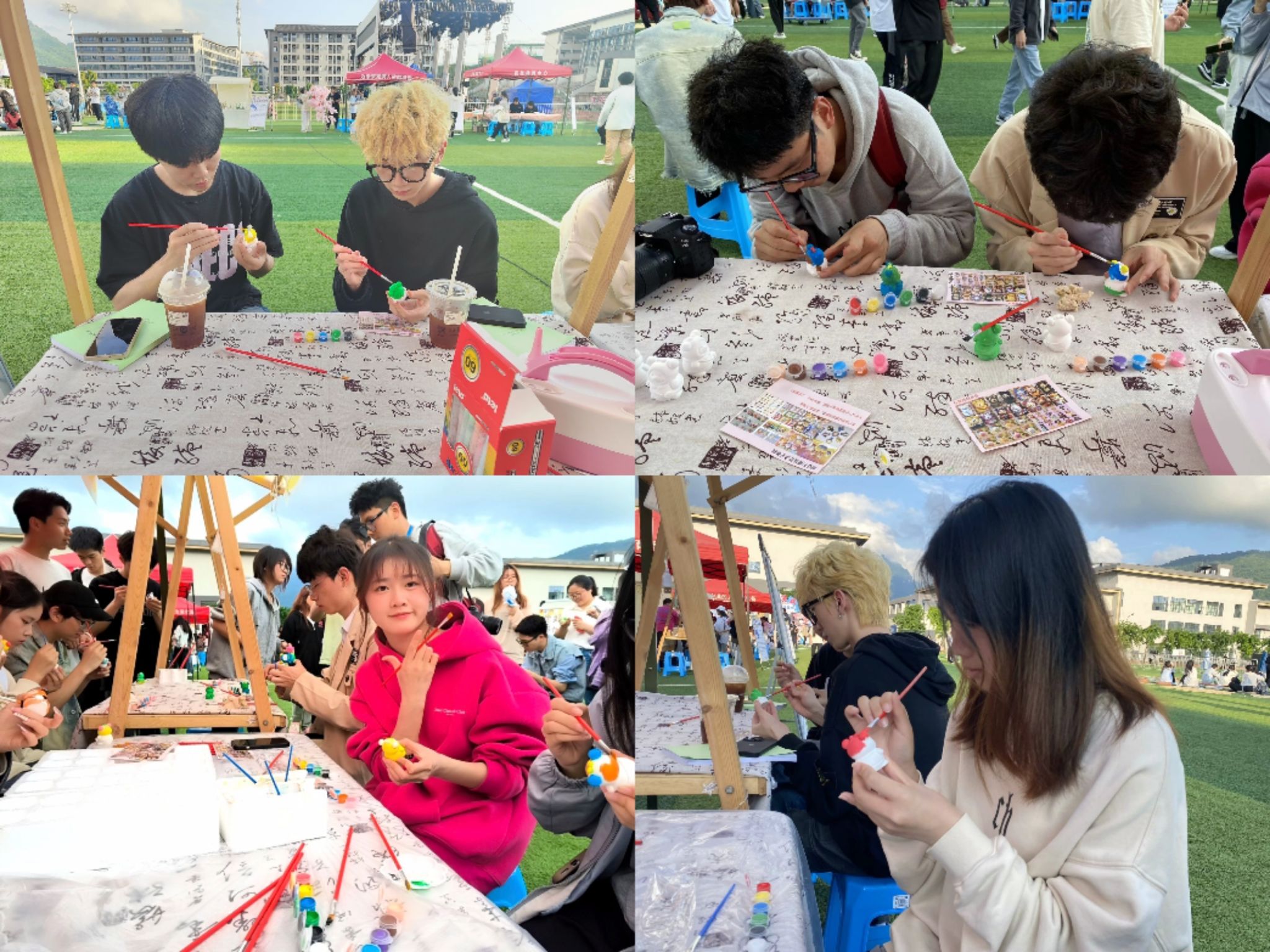 活动开始前,工作人员提前着手现场布置。分工明确,有序的准备糖画和石膏娃娃手绘活动等相应的物资。方寸之地,不减学院风采。